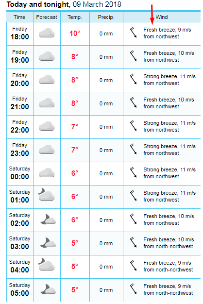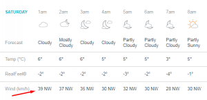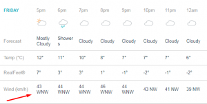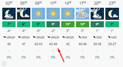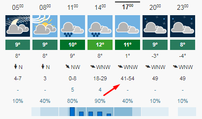 ხოლო Accuweather-ის ინფორმაციით, პარასკევ საღამოს ქარის სიჩქარე 45 კმ/საათამდე იქნება და შაბათს დილამდე 30 კმ/საათამდე დაიკლებს
