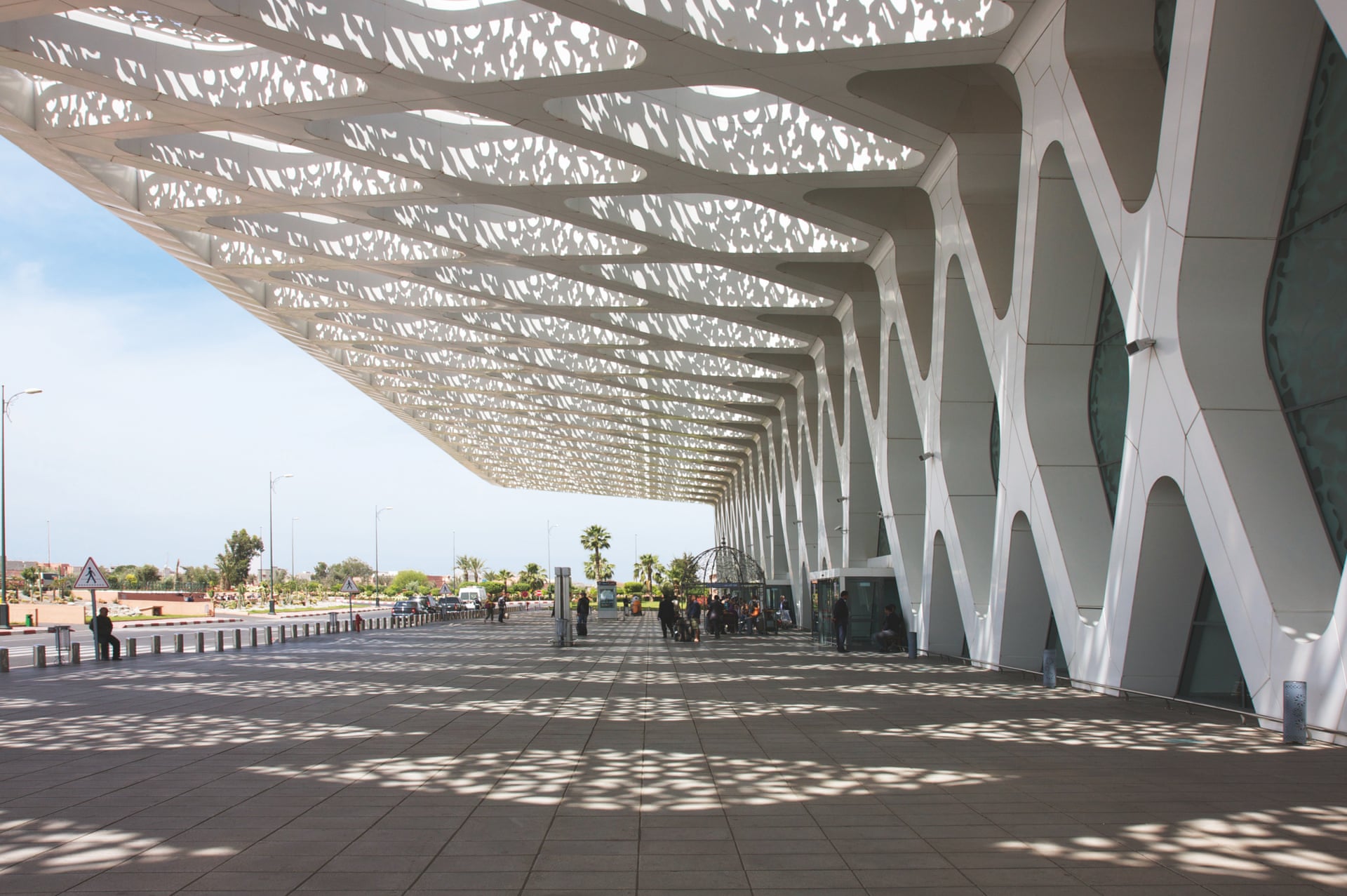 მენარას აეროპორტს, რომელიც 2000-იანი წლების დასაწყისში ტურისტთა მზარდ ნაკადთან გასამკლავებლად აიგო, ბეტონის მრუდე ჭერი და დიდი, სამკუთხა ფანჯრები აქვს, რომლებიც არაბული დიზაინითაა მოხატული. აეროპორტის პროექტზე ფრანგულმა კომპანია CR-მა და კასაბლანკაში მდებარე E2A-მ იმუშავეს, რისი შედეგიც ტრადიციული და თანამედროვე არქიტექტურის ეს ულამაზესი ნაზავია.