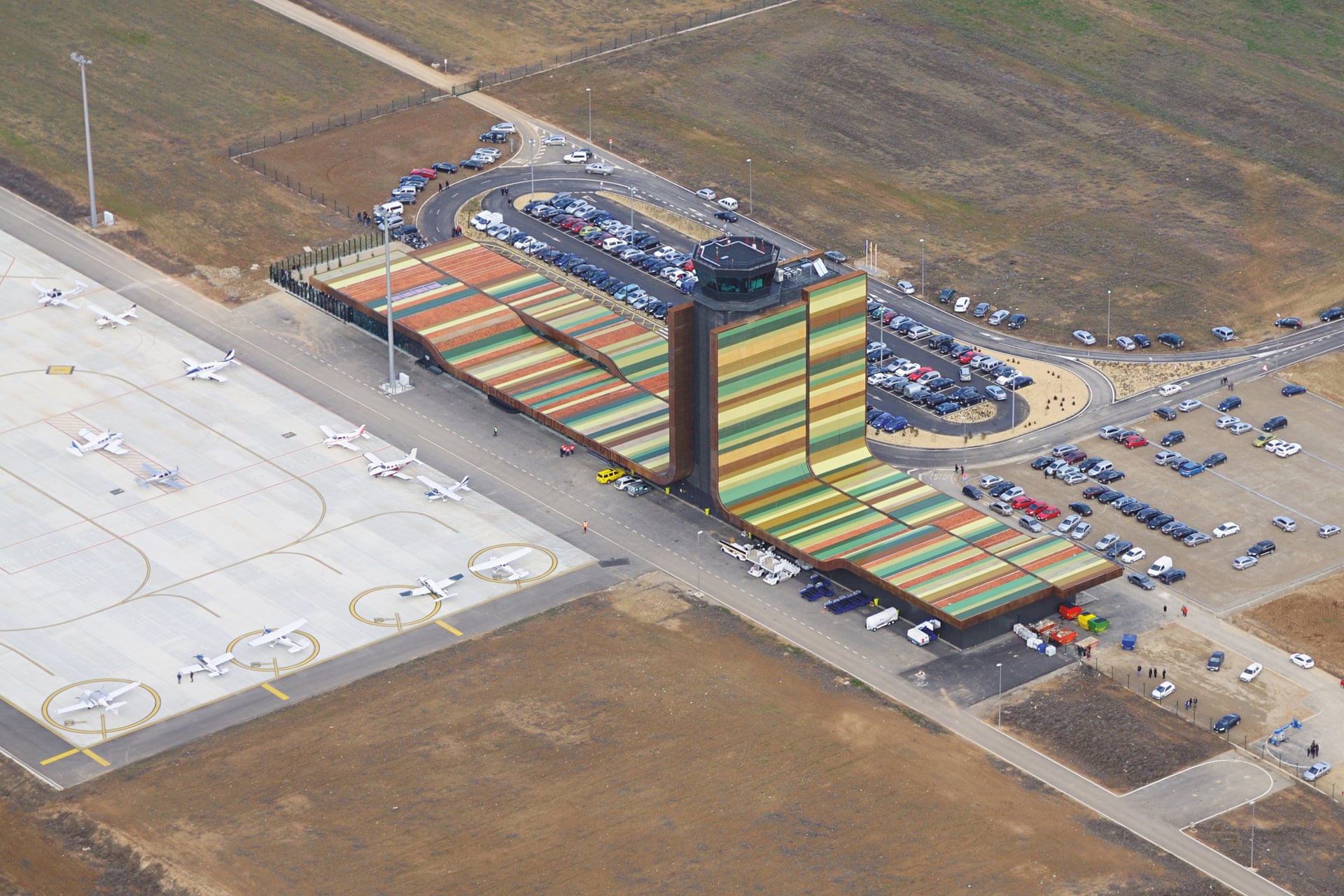 აეროპორტის სამეთვალყურეო კოშკი 41 მეტრის სიმაღლისაა და ტერმინალშია მოქცეული. ნაგებობის გარე მხარე ზეთისხილისფერი, მწვანე და ყავისფერი მეტალის ფირფიტებითაა შემოსილი.