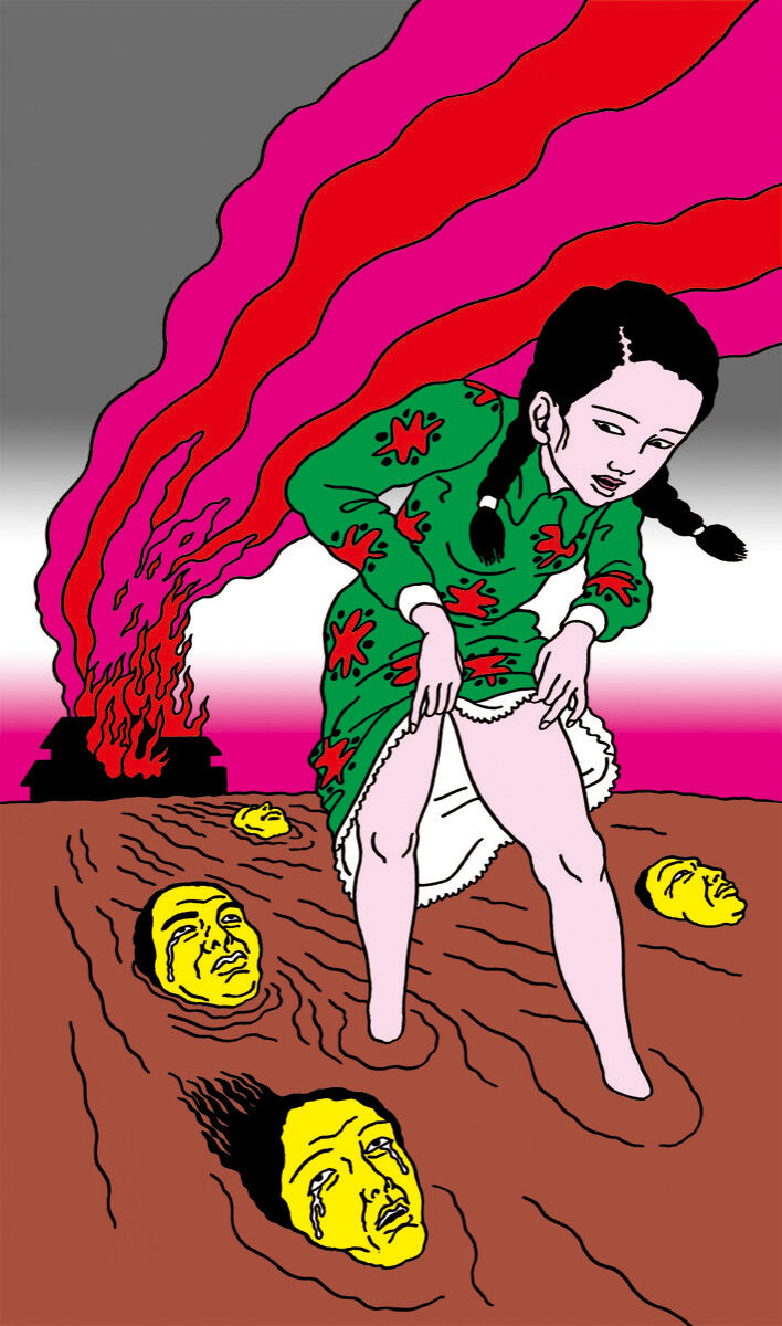 მის ნახატებში იაპონური კულტურის დიდი ცოდნაც ჩანს: ინტერიერის ტრადიციული ელემენტები, პერსონაჟები ფოლკლორიდან, სინტოისტური სულები – არტისტის სამყარო ცოცხლების, გარდაცვლილებისა და გამოგონილი არსებების ჰიბრიდულ თანაარსებობას წარმოადგენს.