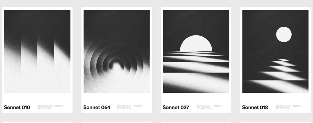 შექსპირის სონეტების გრაფიკული პოსტერები დიზაინერ ქსტიან მილერისაგან