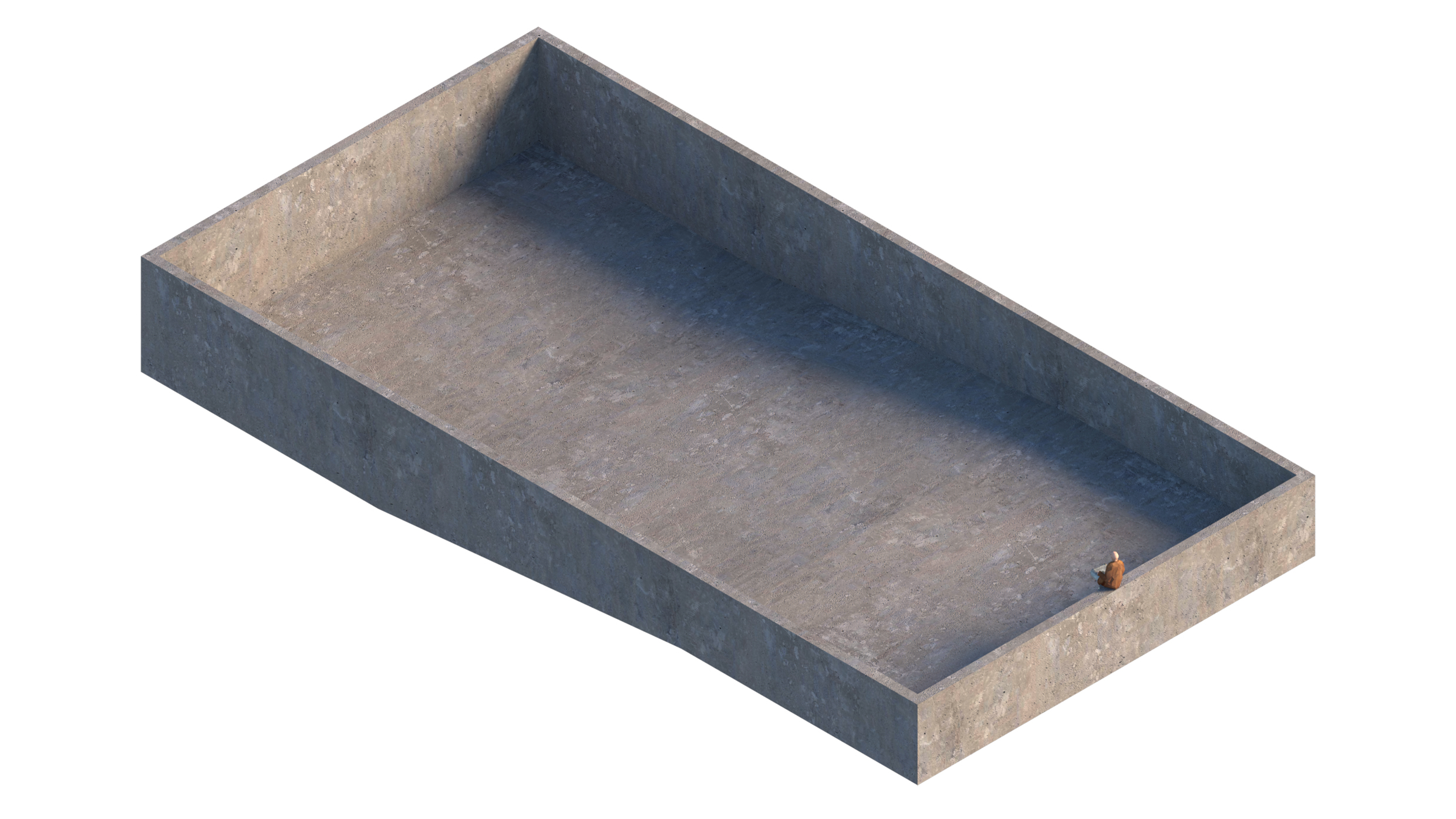 არსებული ბეტონის სიცარიელე ჯერ გაიწმინდა და გაპრიალდა, აშენდა ცემენტის ბლოკის სხვადასხვა სიმაღლის 7 კედელი, კედლებს შორის სიცარიელე კი შეივსო ნიადაგით და ხრეშით, ჩაისხა ბეტონის ფილები და გაშრობის შემდეგ ცემენტი გაპრიალდა, დაიფარა და შეიღება ღია ცისფერი  წყალგაუმტარი საღებავით.