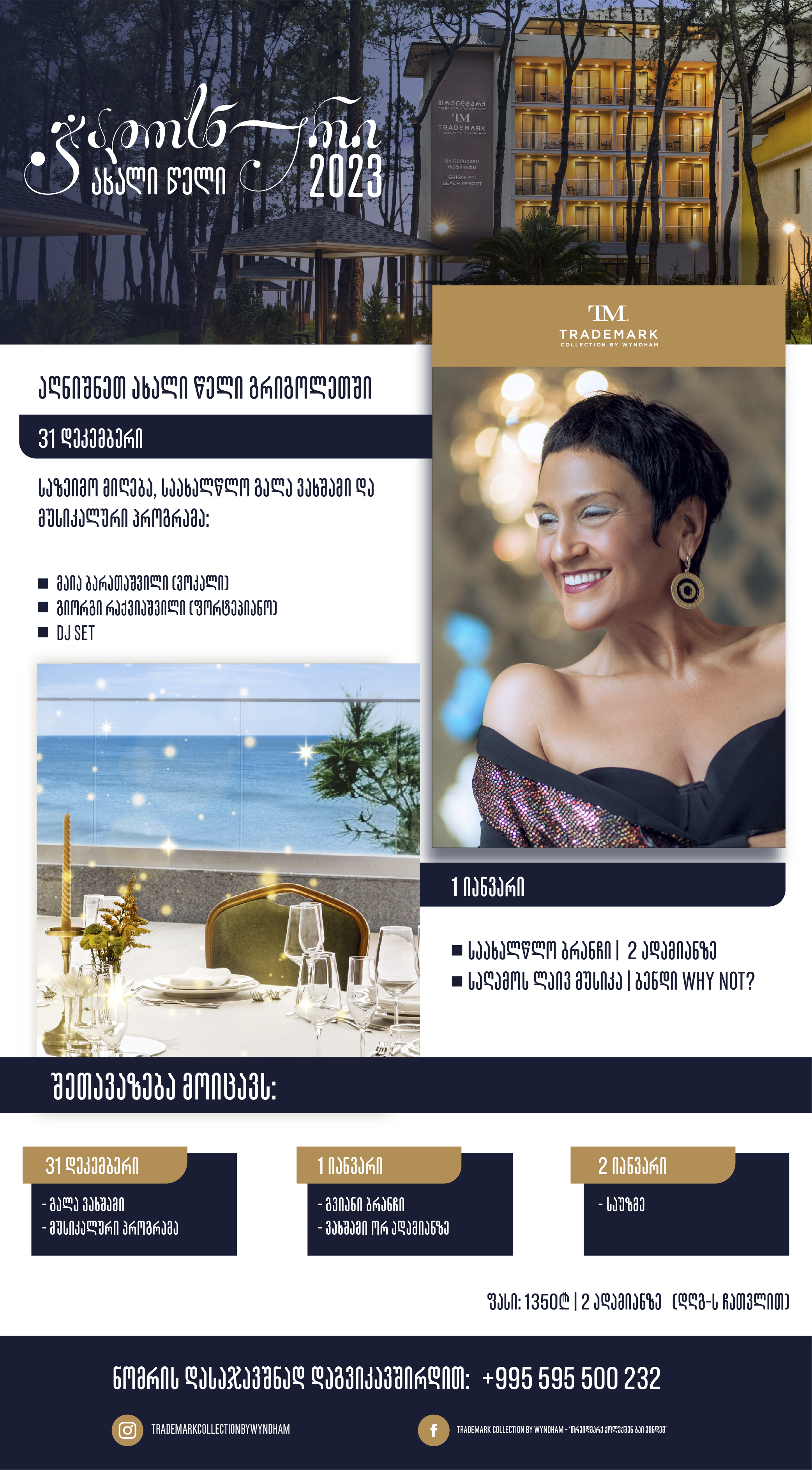 შეხვდით ახალი წელს გრიგოლეთში. სასტუმრო ‘თრეიდმარქ ქოლექშენ ბაი ვინდემ’-ში 31 დეკემბერს -საზეიმო მიღება და საახაწლო გალა ვახშამი გაიმართება.