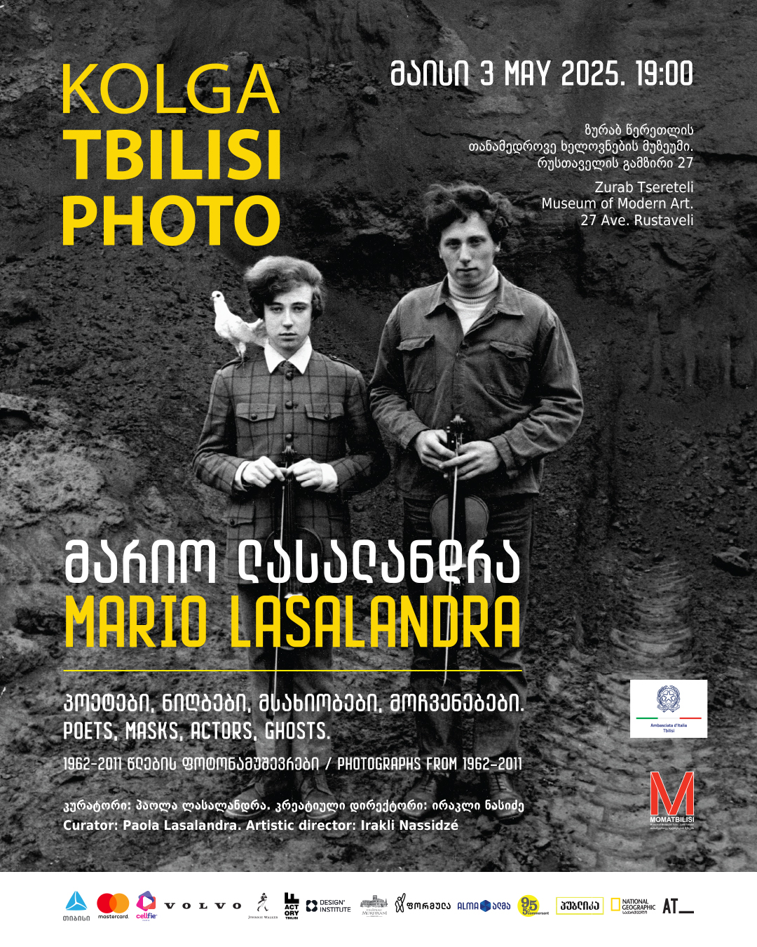 ფოტოგამოფენა „პოეტები, ნიღბები, მსახიობები, მოჩვენებები“ (1962-2011 წლების ფოტონამუშევრები) ერთგვარი მოგზაურობაა მსოფლიოში ცნობილი ვენეციელი ფოტოხელოვანის, მარიო ლასალანდრას ცხოვრებასა და შემოქმედებაში და მისი ნამუშევრების რეტროსპექტივაა. აქ წარმოდგენილი 150-მდე შავ-თეთრი ფოტო, რომლის სტილსაც თავად ლასალანდრა „მაგიურ სურეალიზმს“ უწოდებს, მე-20 საუკუნის იტალიას დაგვანახებს. მარიო ლასალანდრა იტალიური ფოტოგრაფიის ერთ-ერთ ყველაზე ინოვატორ და ბრწყინვალე ფიგურად ითვლება. თავად ფოტოხელოვანი და მხატვრი იგონებს, რომ პირველად სინათლისა და კომპოზიციის საფუძვლებს ჯიამბატისტა ტიეპოლოსთან და წმინდა თეკლას ხატზე დაკვირვებით დაეუფლა, ესტეს ტაძარში, რომელიც მისი ბავშვობის სახლთან ახლოს მდებარეობდა. ის ასევე მის გავლენად ასახელებს რეჟისორების მიქელანჯელო ანტონიონის, ფედერიკო ფელინის, ინგმარ ბერგმანისა და პაზოლინის ფილმებს.
