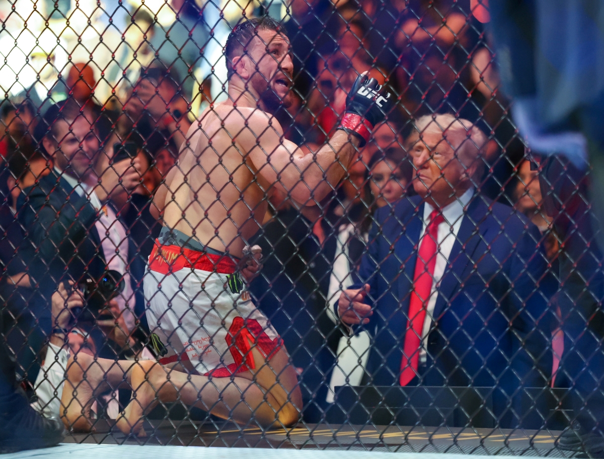 ტრამპის შემთხვევაში პრეზიდენტად კურთხევის რიტუალი ოქტაგონზე შესრულდა, მისი უდიდებულესობა პრეზიდენტის სტატუსით პირველად გამოჩნდა იქ, სადაც კუნთი და სისხლია დღის წესრიგში. იმ წუთიდან MMA ოფიციალურად იქცა არა მხოლოდ სანახაობად, არამედ ძალაუფლების ერთ-ერთ საკრალურ არენად.
