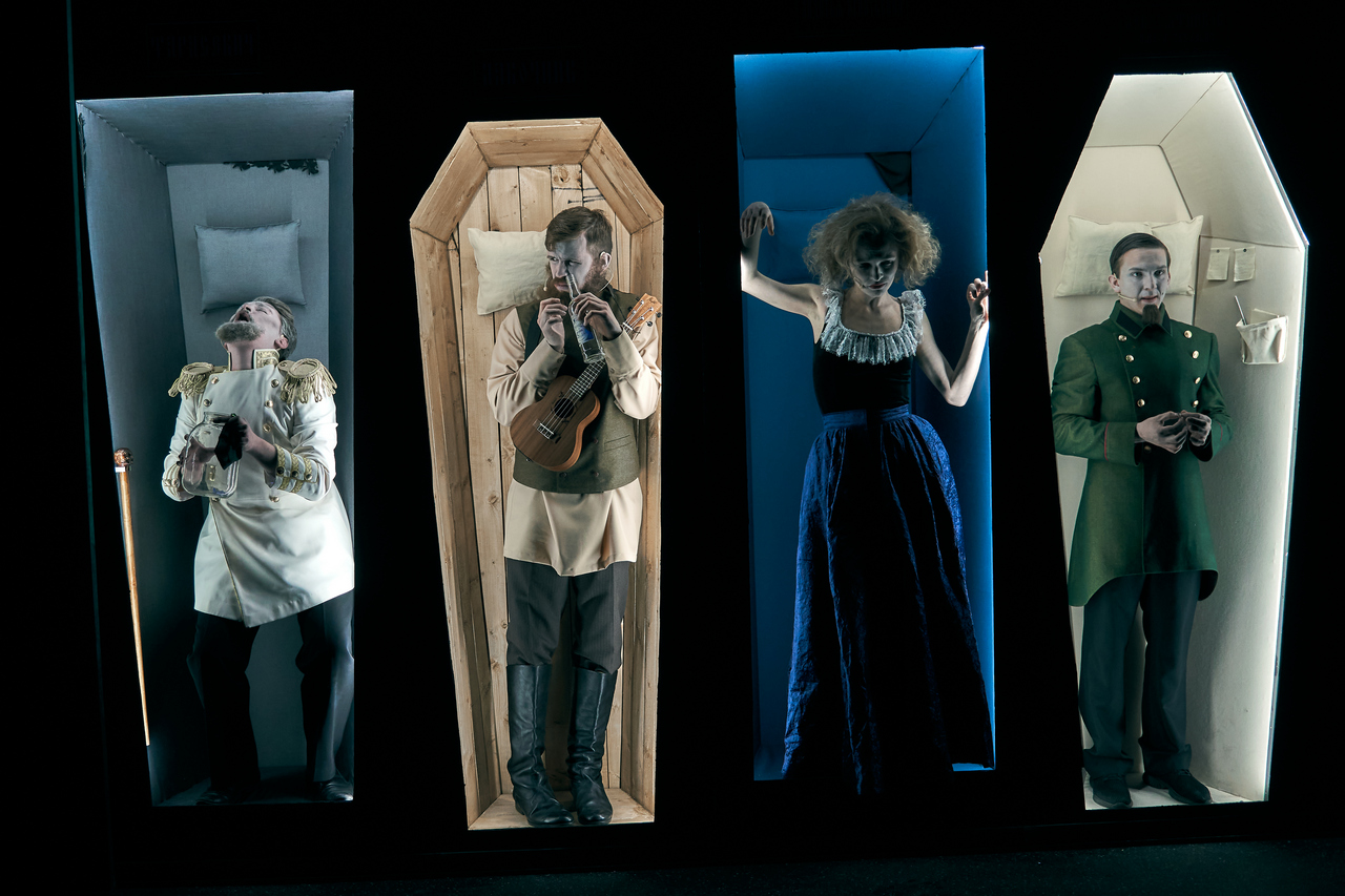 კადრი დოსტოესკის მოთხრობის – “ბობოკის” – მიხედვით დადგმული სპექტაკლიდან. დაიდგა კალუგის საოლქო დრამატულ თეატრში 2022 წლის 12 მაისს