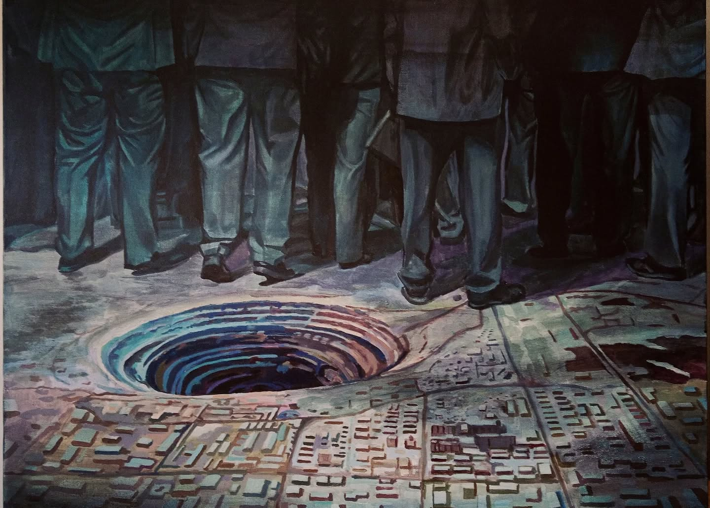 როცა პოლიტიკაში არ არსებობს ინდივიდუალური ხედვა და ის ემყარება სხვების გამოცდილებას, მოვლენათა თანმიმდევრობა წინასწარ შეიძლება იქნას გაგებული ან ჩაფიქრებული. ამ დროს მოსალოდნელია, ავტორიც ვერ “გადაურჩეს” პოლიტიკური სცენარის ნაადრევად დაფიქსირებას ან თანმიმდევრულობას. ჩემთვის ასეთი ავტორი დავით კუხალაშვილია, რომლის სიურრეალისტური ნამუშევრები კრიტიკულად ასახავს პოლიტიკურ სისტემებს და ამ სისტემაში მყოფთ. გეომეტრიული ტრანსლაციურობის პრინციპის დახმარებით ავტორი ქმნის ესთეტიკას, სადაც ინდივიდთა ერთნაირი ქცევა შემზარავი ან დამთრგუნველია, პოლიტიკოსები ერთფეროვნები არიან და ბოროტება ისევ ბნელში ხარობს.