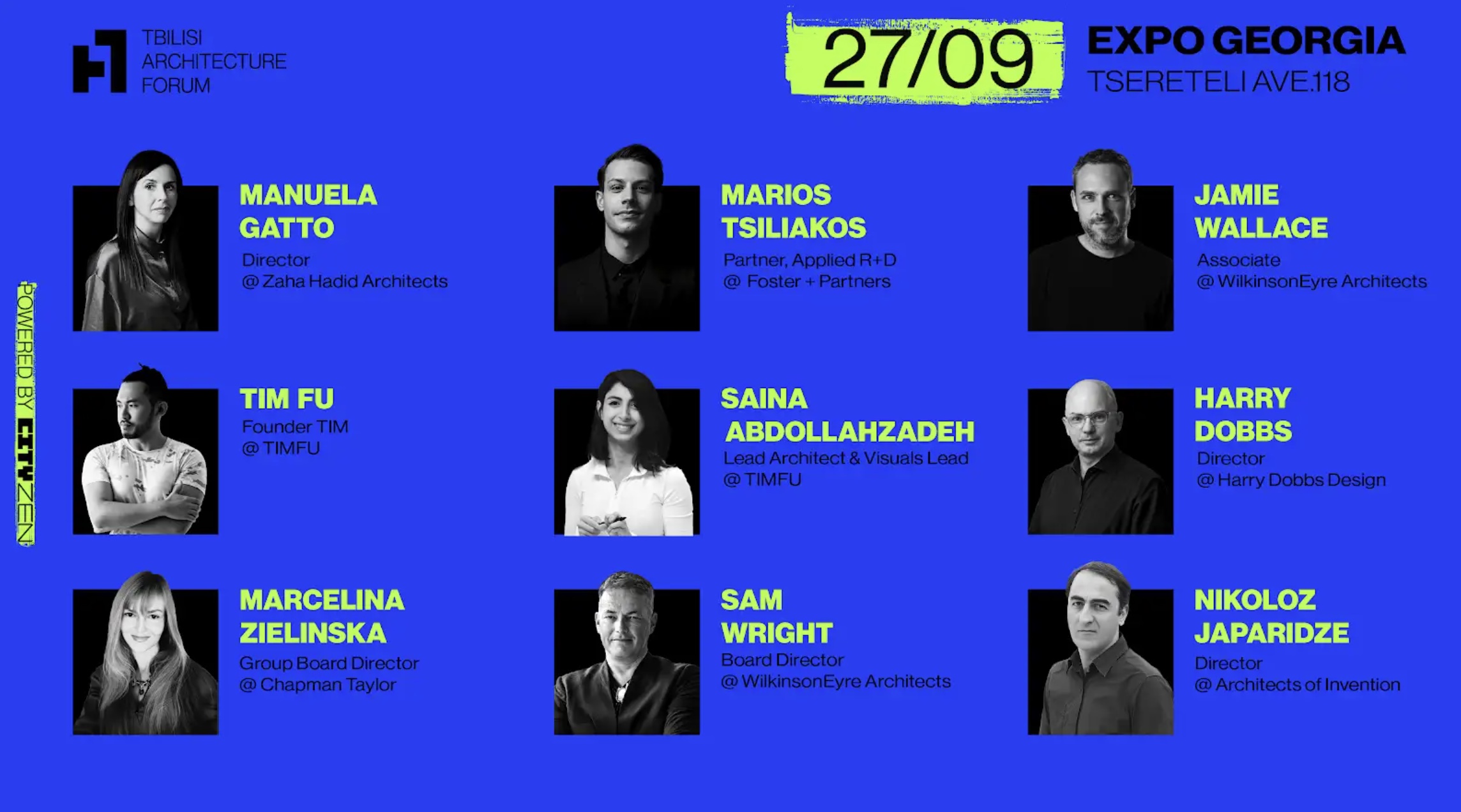 ფორუმის სპიკერები იქნებიან მსოფლიო და ადგილობრივი არქიტექტურული სცენის გამორჩეული წარმომადგენლები: