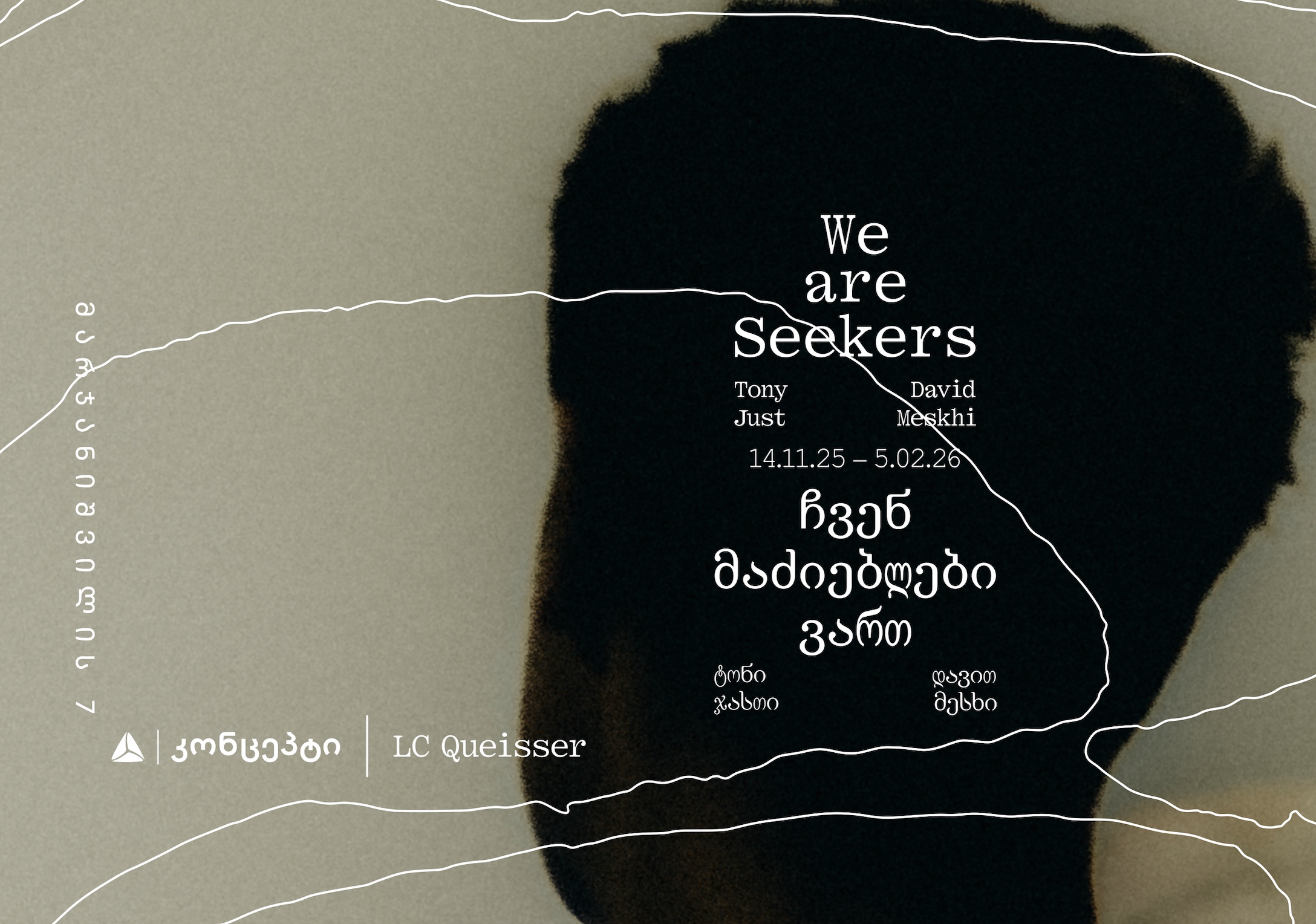 თიბისი კონცეპტის გალერეა 14 ნოემბერიდან გიწვევთ დავით მესხის და ტონი ჯასთის ერთობლივ გამოფენაზე „ჩვენ მაძიებლები ვართ“. გამოფენის კურატორია გალერეა „ელ ცე კვაისარ“.