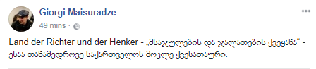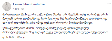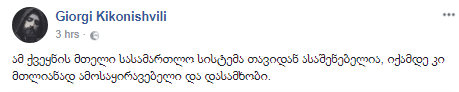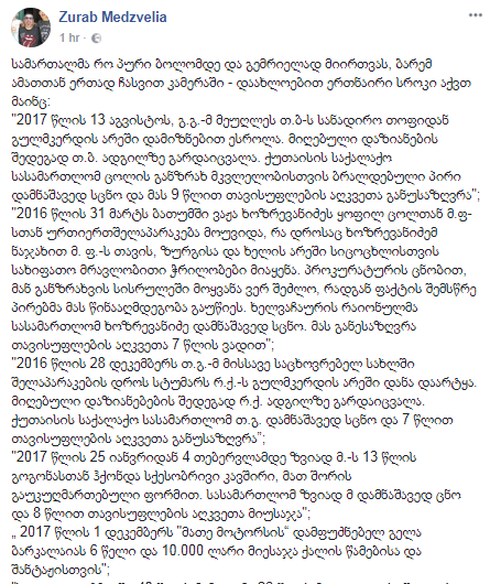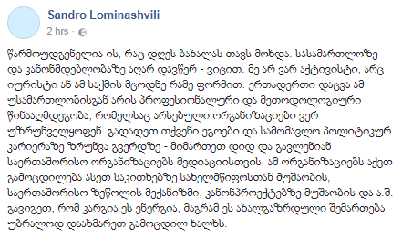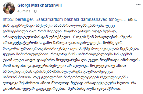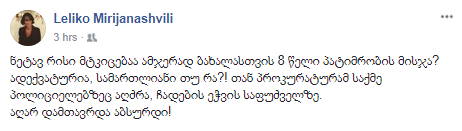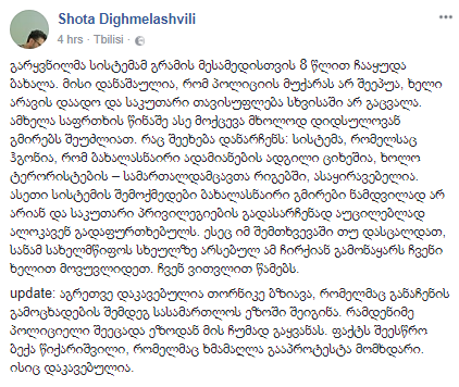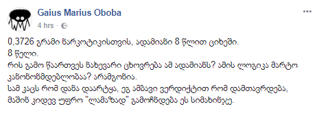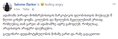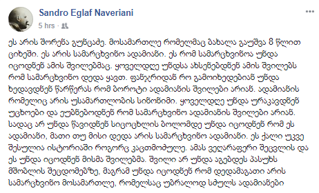 გამომდინარე იქიდან, რომ გიორგი გიორგანაშვილს არავისთვის მიუყენებია რაიმე სახის დაზიანება ან ზარალი, ასევე, საქმეში არსებული ბევრი საეჭვო და გამოუძიებელი გარემოების გამო, არსებულ მკაცრ განაჩენს არალეგიტიმურად მიიჩნევს უამრავი ადამიანი, ვისი ფეისბუკ-სტატუსების მცირე ნაწილსაც ამ პოსტში ვუყრით თავს.