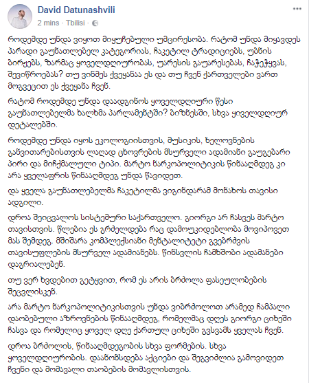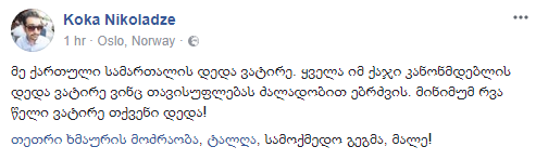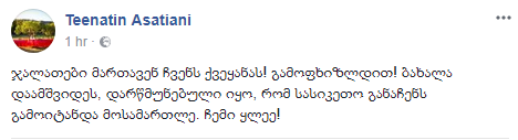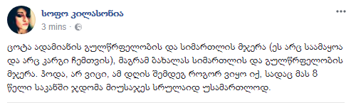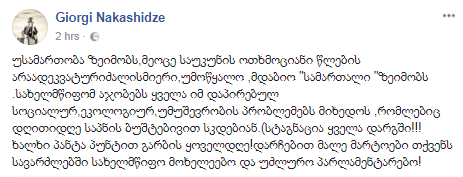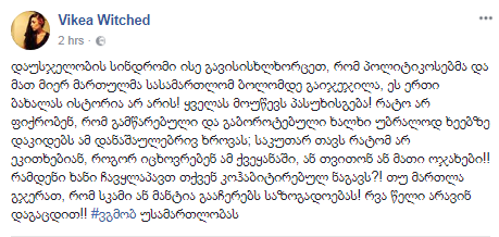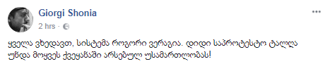 იმედი გვაქვს, რომ ეს პროტესტი გასცდება სოციალური ქსელის ფარგლებს და შეძლებს შეამციროს უსამართლობის ხარისხი ჩვენს ქვეყანაში.