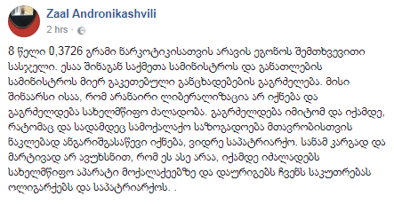 როგორც ცნობილია, 23 იანვარს თბილისის სასამართლომ ბახალა (გიორგი გიორგანაშვილი) დამნაშავედ ცნო განსაკუთრებით დიდი ოდენობით ბუპრენორფინის (სუბოტექსის) შენახვაში, რისთვისაც 8 წლიანი პატიმრობა მიუსაჯა.