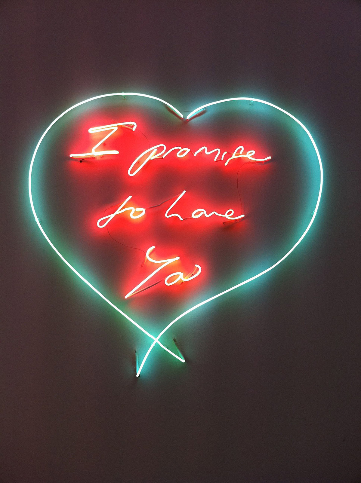 2000-იან წლებში ტრეისი ემინმა ნეონის განათებებით დაიწყო მუშაობა, რომელიც სხვადასხვა ფრაზებისა და სიტყვებისგან შედგება და განსხვავებულია სხვა, მაგალითად, ბრიუს ნაუმანის ნამუშევრებისგან. ისინი თითქოს ხელნაწერებია. “ნეონი ყველასთვის ემოციურია და არგონის აირთან ერთად დადებით განწყობას გვიქმნის, ამიტომაც არის ის ყველგან – კაზინოებში, გასართობ ცენტრებში, ბარებში და წითელი შუქების გამზირზეც. ნეონს შეუძლია დაეხმაროს დეპრესიაში მყოფ ადამიანებს”. ემინის ნეონის ნამუშევრის მოულოდნელი და ირეალური ფრაზა – you forgot to kiss my soul ატყვევებს მნახველს და ხელოვანთან ემოციურ დიალოგში შეჰყავს.