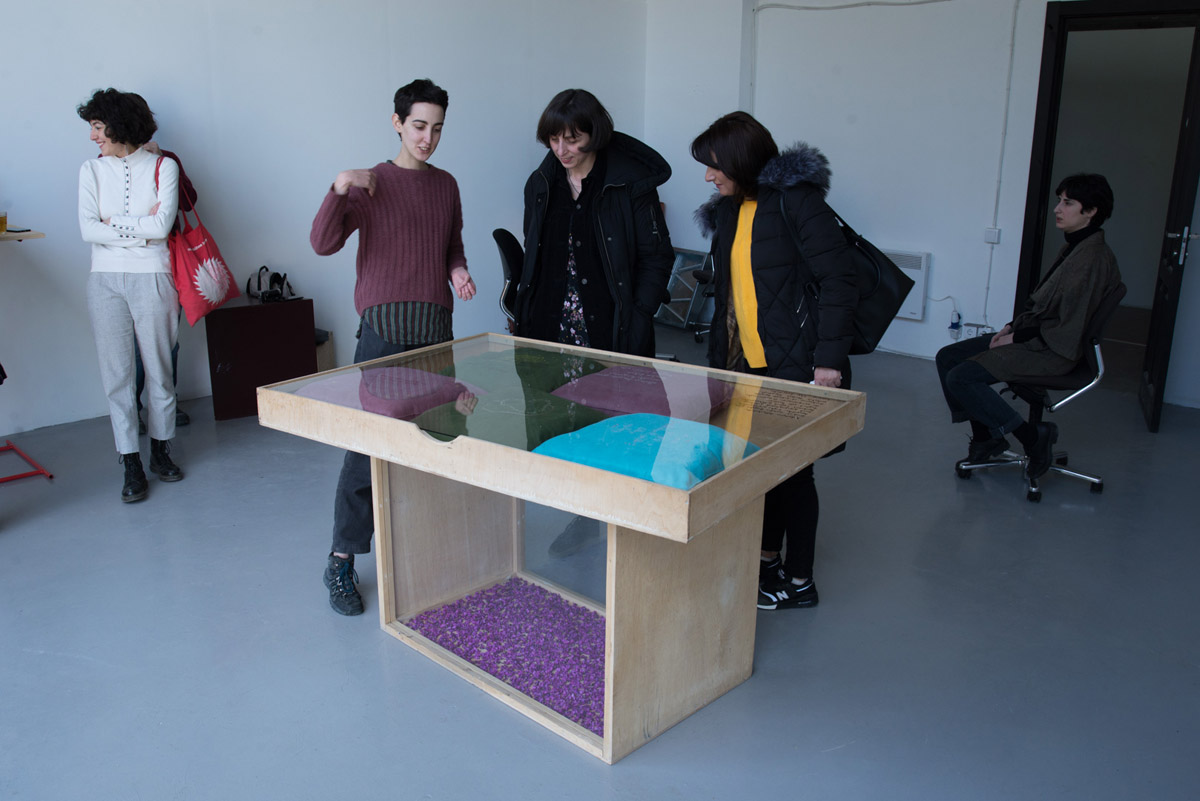 მუდმივი სივრცე არ გვქონია. სანამ აქ გადმოვიდოდით, ჩვენი შეკრებების ადგილი მარიამის სამზარეულო იყო. მარიამის სახლში ერთი გამოფენაც გვქონდა, სოფო კობიძის, შარშან, ზაფხულში. ასევე გვქონია გამოფენები ფაბრიკაში, ლიტერატურის მუზეუმში, თელავის პარკში, გარიყულაზე, რუსთავის პარკში, გალერეა კონტეინერში… სულ სხვადასხვა ხალხი მოდის გამოფენებზე და ესეც მოგვწონს. 2019 წლის დასაწყისიდან D ბლოკში კვირაობით პატარა გამოფენებსაც ვაწყობთ, რომლებსაც უფრო მეტად მეგობრული შეკრების და აზრების გაზიარების დატვირთვა აქვს. აქ რომ დავბინავდით, მივხვდით, რომ საჭირო იყო მსგავსი ექსპერიმენტებისთვის დაგვეთმო ჩვენი ოთახი (რაც დიდი გამოფენებზე ადგილს ვერ პოულობს).