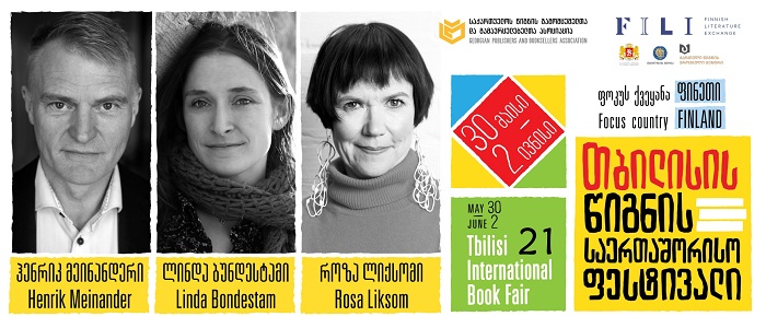 ფოკუს-ქვეყნის პროგრამა განხორციელდება მსოფლიოს ერთ-ერთი ყველაზე წარმატებული ლიტერატურული ორგანიზაციის, ფინური ლიტერატურის განვითარების ფონდის, „ფილის“ ორგანიზებით. 30 მაისიდან 2 ივნისის ჩათვლით თბილისის წიგნის საერთაშორისო ფესტივალის სპეციალური სტუმრები იქნებიან ფინელი მწერალები: ჰენრიკ მეინანდერი, როზა ლიქსომი, ლინდა ბუნდესტამი.