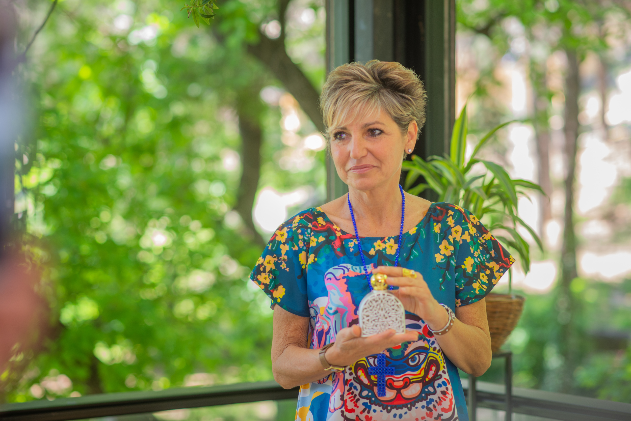 მწვანეში ჩაფლული ტერასის ფონზე მარტინ მიკალეფის ჭრელი კაბა ეგზოტიკური ყვავილივით ანათებდა. მინიატიურული ქალი მხიარული თვალებითა და უშრეტი ენერგიით მასსავით ფერადი სუნამოების შესახებ ისეთი სიყვარულით ჰყვებოდა, რომ ცოცხლად დავინახე მზიან დღეს საფრანგეთის ქვიშიან სანაპიროზე მოთამაშე ბავშვები. ერთადერთი და, ცელქ ძმებს შორის, რომელიც ბიჭებს არაფერში არ უნდა ჩამორჩეს – მარტინია.