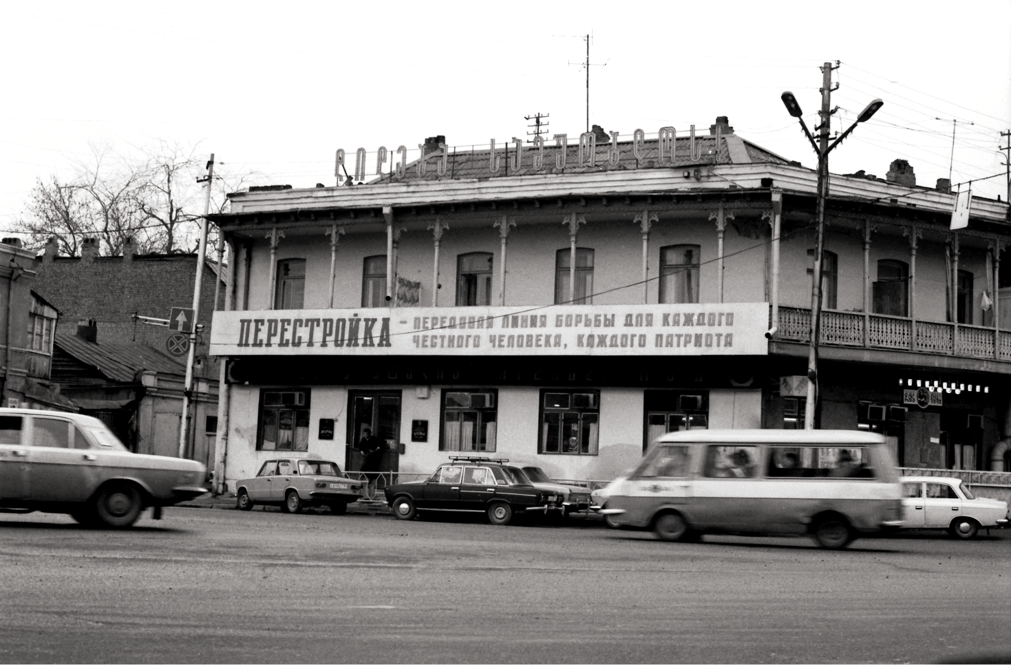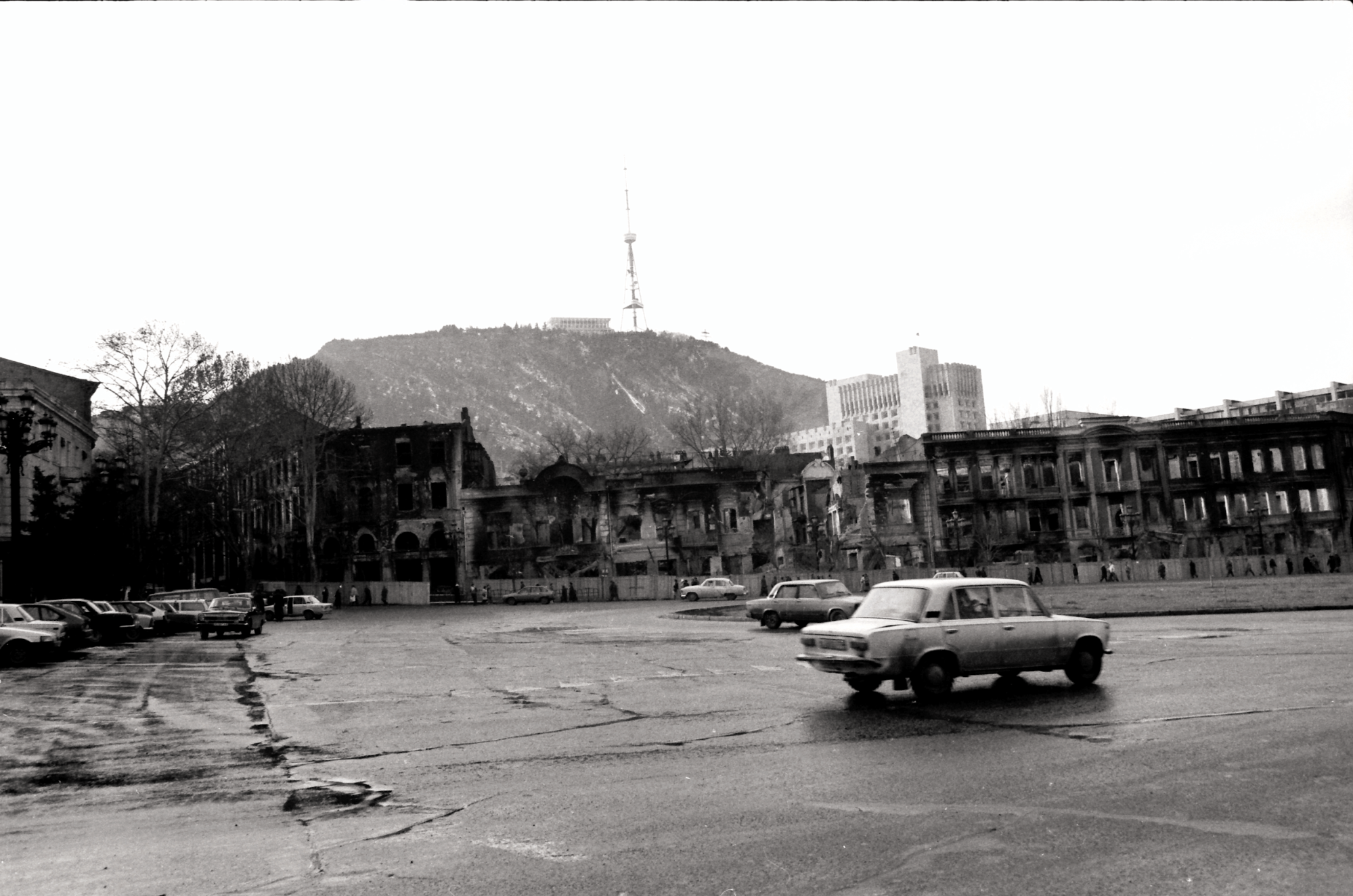 ეს სახლი ახლაც დგას ფიროსმანის ქუჩის დასაწყისში. მე კუკიაზე ვცხოვრობდი და რეალურად ყოველდღე მიწევდა მის წინ ჩავლა. ამ სახლს ვხედავდი და სულ იცვლებოდა მასზე წარწერები. ამ ფოტოზე ზევით წერია დიდება სამშობლოს, ქვევით – პერესტროიკა. ეს იყო ადგილი, რომელიც ამ კლიშე წინადადებებს იტევდა სულ. სამწუხაროდ, ადრეულ ასაკში ფოტოებს არ ვიღებდი, მაგრამ რეალურად მარტო ამის წინ რომ კამერა დაგედგა და ყოველ 3 თვეში გადაგეღო, მიხვდებოდი, როგორი პროცესები მიმდინარეობს. ეს დანგრეული „დიდება სამშობლოს“ სულ ეკიდა და ქვევით იცვლებოდა ხან ის, ხან ეს. მოვიდოდა ვიღაც და იტყოდა, რომ სიფხილზე არის მნიშნელოვანი – დააწერდნენ ამას. მერე მოვიდოდა სხვა, იტყოდა ახლა პერესტროიკაა – დააწერდნენ და ასე შემდეგ. ახლაც იგივე ხდება. ახლაც ამ სახლზე სულ რაღაც პლაკატი, წარწერა – საარჩევნო, არასაარჩევნო… სულ იცვლება. ამიტომ ძალიან საინტერესოა.