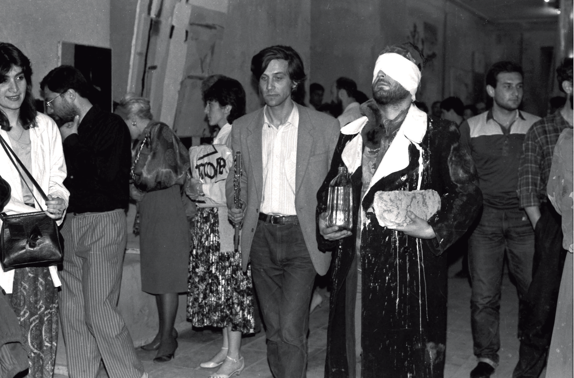 წიგნში არის ის პირველი პერფორმანსიც, როცა მხატვარმა მამუკა ცეცხლაძემ დამსწრეების თვალწინ შეასრულა არტისტული პერფორმანსი და ეს ადვილი არ იყო. როცა საზოგადოება შეჩვეული იყო, გამოფენაზე რომ მიდის, კედელზე დაკიდებული სურათი უნდა იხილოს მარტო, მისთვის რთული მისაღებია, რომ არტისტი, რომელიც ამბობს, რომ მე არტისტი ვარ და ყური დამიდგეთ, აკეთებს ისეთ რამეს, რაც შეიძლება ფანჯრიდან ჩანდეს, როგორც სიგიჟე. და ამას აკეთებს ისეთი აკადემიური არტისტი, როგორიც მამუკა ცეცხლაძეა. მან თვალახვეულმა დააპურა ქათამი. მაშინ ეს შოკისმომგვრელი უფრო იყო, ვიდრე მერე ანალიზის საგანი. „აუ ეს რა გააკეთა!“ ის კი არა, რომ რატომ გააკეთა. ეს მართლა მნიშვნელოვანი იყო. იქ ძირითადად ხელოვნებით დაკავებული ადამიანები დადიოდნენ და მათთვისაც შოკისმომგვრელი იყო. და იყო ნიშანი იმისა, რომ შენც შეგიძლია. მისი გაბედულება იყო შენი გაბედულების ტოლფასი.