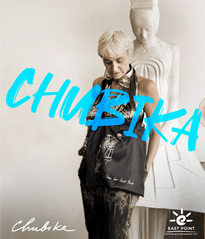 “ისთ ფოინთი”  2015 წელს გაიხსნა… და გახსნის დღიდანვე ჩანთები ამ ადგილის სავიზიტო ბარათი გახდა. ჩანთები  თავდაპირველად დიზაინერ ჩუბიკასთან ერთად ერთობლივი პროექტის ფარგლებში შეიქმნა. “ისთ ფოინთის” გახსნის დღეს მოსულ სტუმრებს აქ ჩუბიკას ანგელოზებიანი ჩანთები ელოდათ.