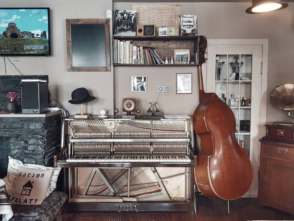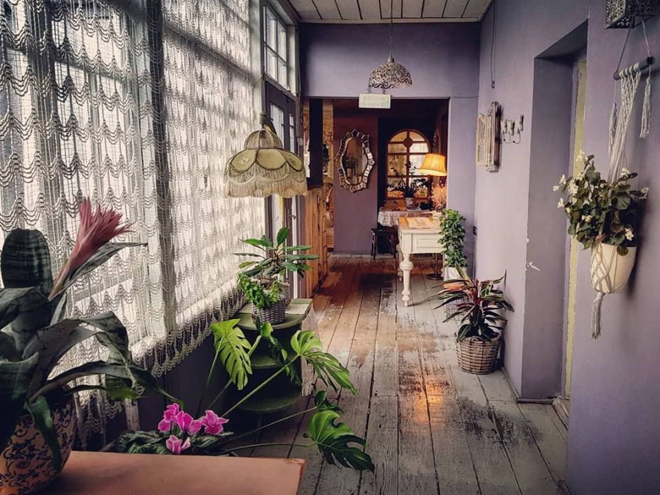 დიდი ხის ფანჯრები ვიწრო ქუჩებზე გადის, ხოლო თვითონ კაფე დატვირთულია სხვადასხვა დეტალით – იქნება ეს ძველებური თუჯის დოქი, გაჩერებული საათი, ჩემოდნები, ფირსაკრავი თუ მრავალი სხვა ნივთი.