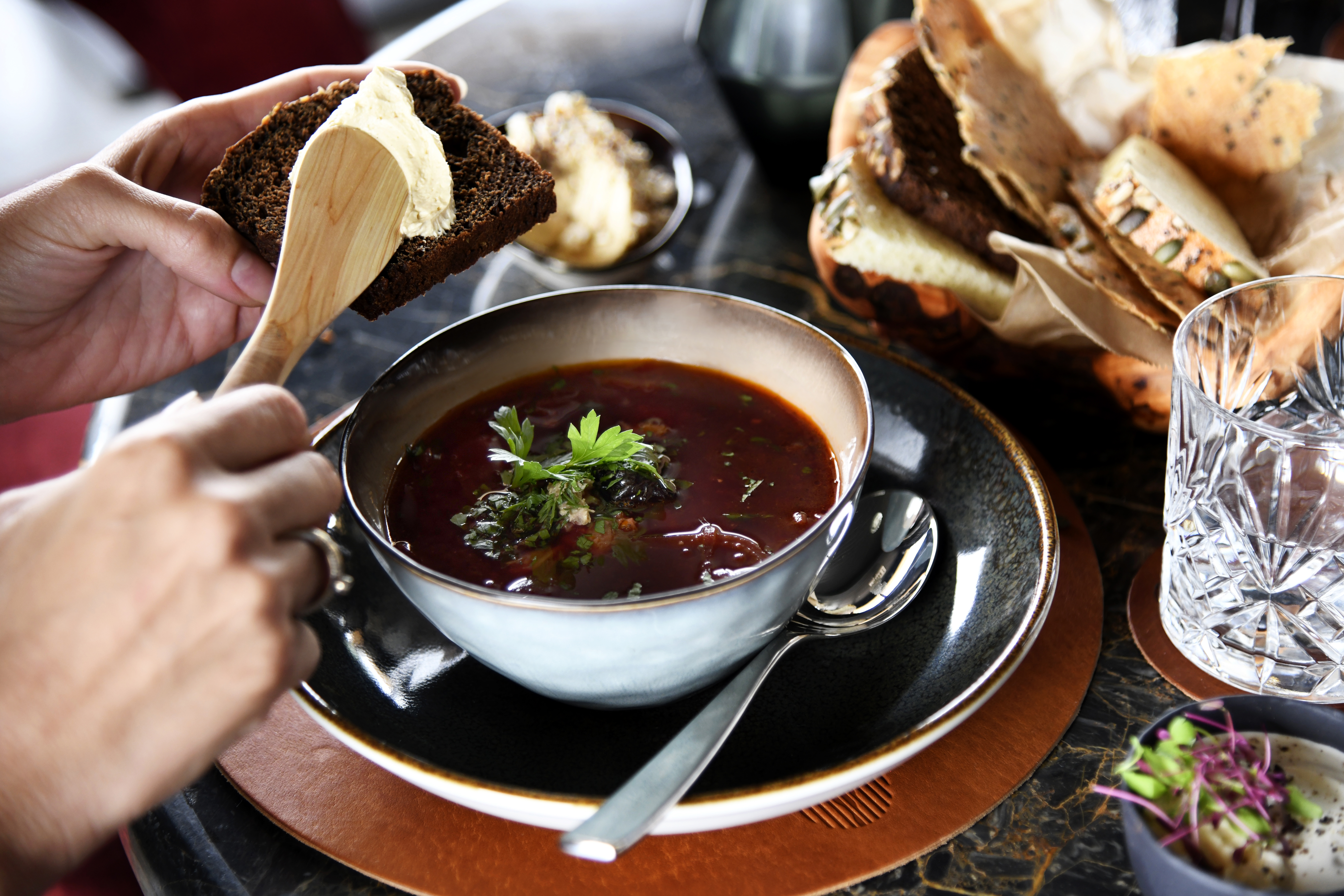 რესტორნის ტერასიდან ულამაზესი ხედები იშლება გოლფის მოედნებსა და ქალაქზე. მენიუზე ესტონელმა შეფმა ვლადისლავ დჯაცუკმა იმუშავა. ესტონელი შეფის კარიერა მსოფლიოში წამყვან რესტორნებს ითვლის, მათ შორისაა Tchaikovsky და Mon repos, სადაც მთავარი შეფ-მზარეული თავად გახლავთ.
