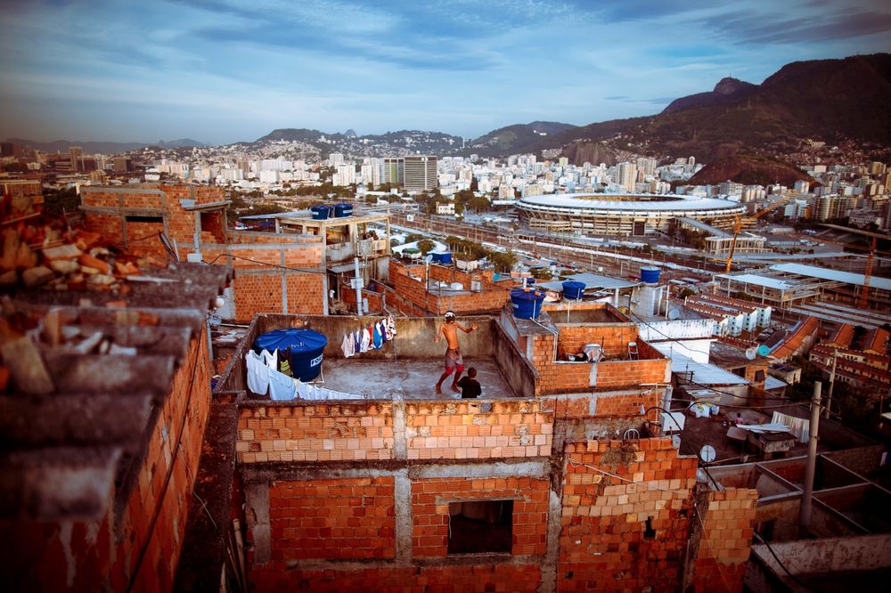 - ბიჭები სახურავზე რიოს ფაველაში, უკანა პლანზე კი „მარაკანას“ სტადიონი და ქრისტეს ცნობილი ქანდაკება. ავტორი: დანიელ მარენკო