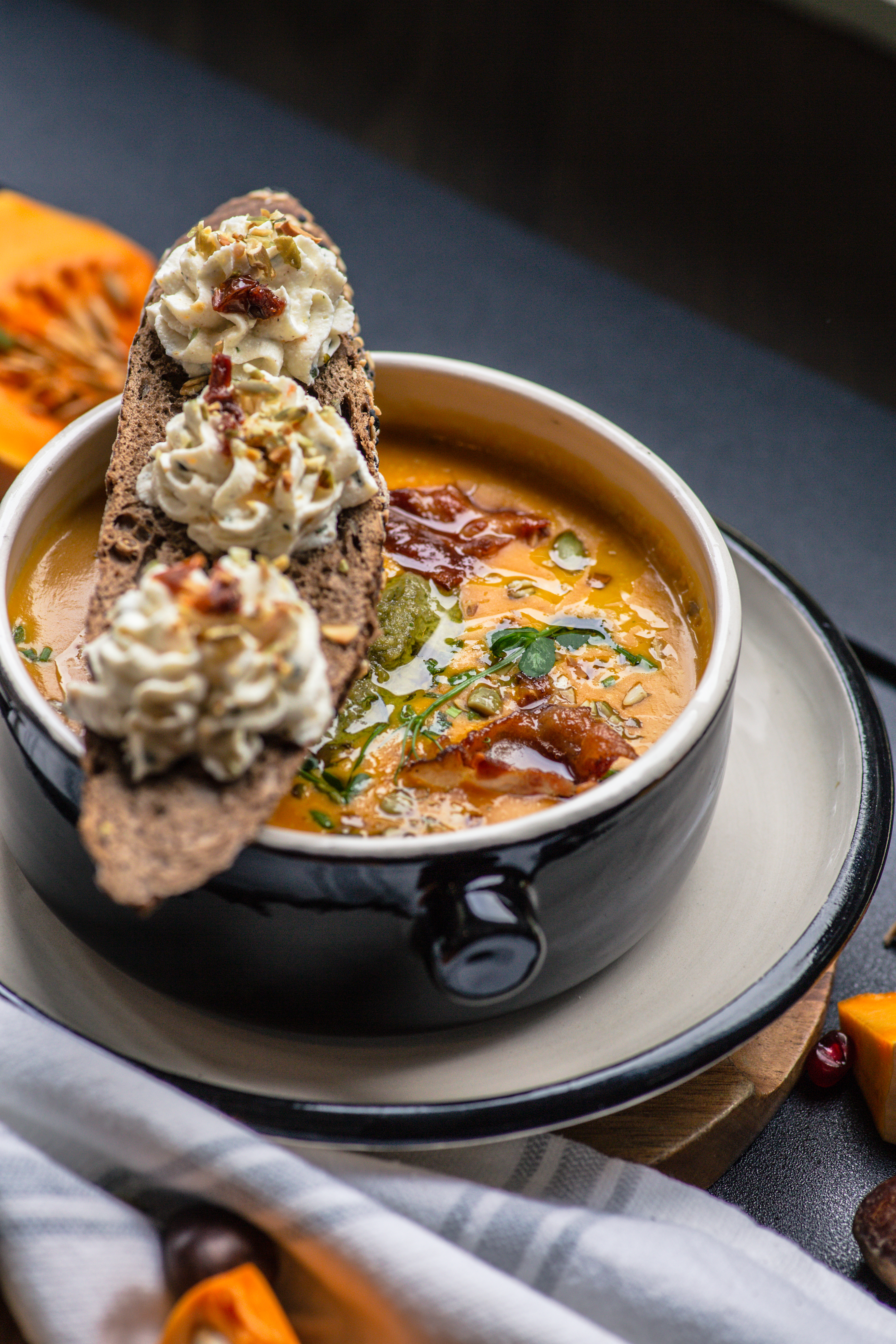 დესერტი: გოგრის ჩიზქეიქი ფორთოხლით და დარიჩინით / გოგრის ტარტი ციტრუსით და პიტნით