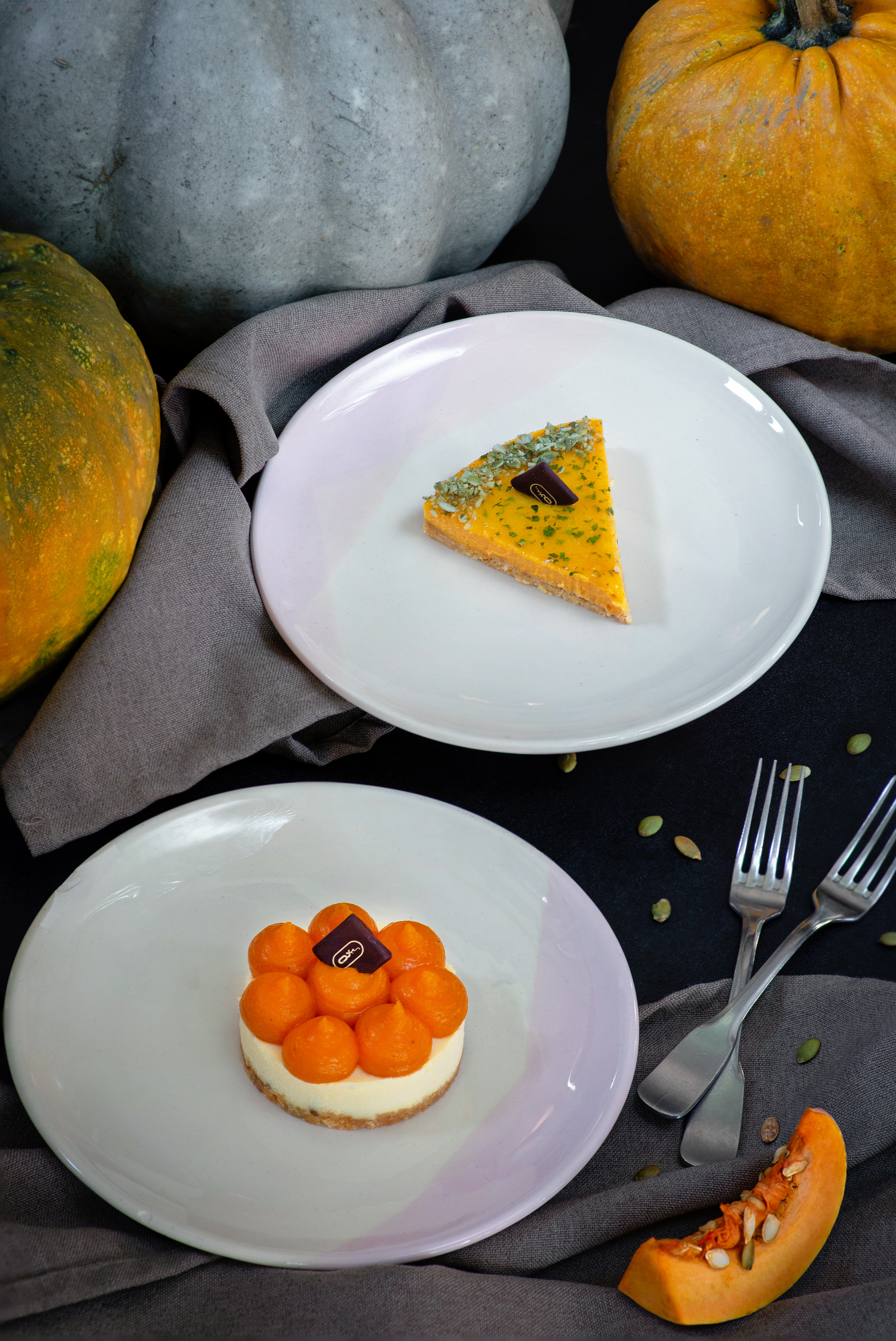 დესერტი: გოგრის ჩიზქეიქი ფორთოხლით და დარიჩინით / გოგრის ტარტი ციტრუსით და პიტნით