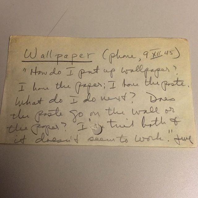 - “როგორ გავაკრა შპალერი? მაქვს წებოც და შპალერიც. წებო შპალერზე უნდა წავუსვა თუ კედელზე? ორივე ვარიანტი ვცადე, მაგრამ, არაფერი გამოვიდა”, 1945 წელი