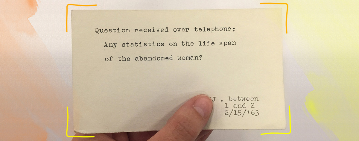 - „არსებობს თუ არა რაიმე ტიპის სტატისტიკური მონაცემები მიტოვებული ქალის სიცოცხლის ხანგრძლივობის შესახებ“?, 1963 წელი