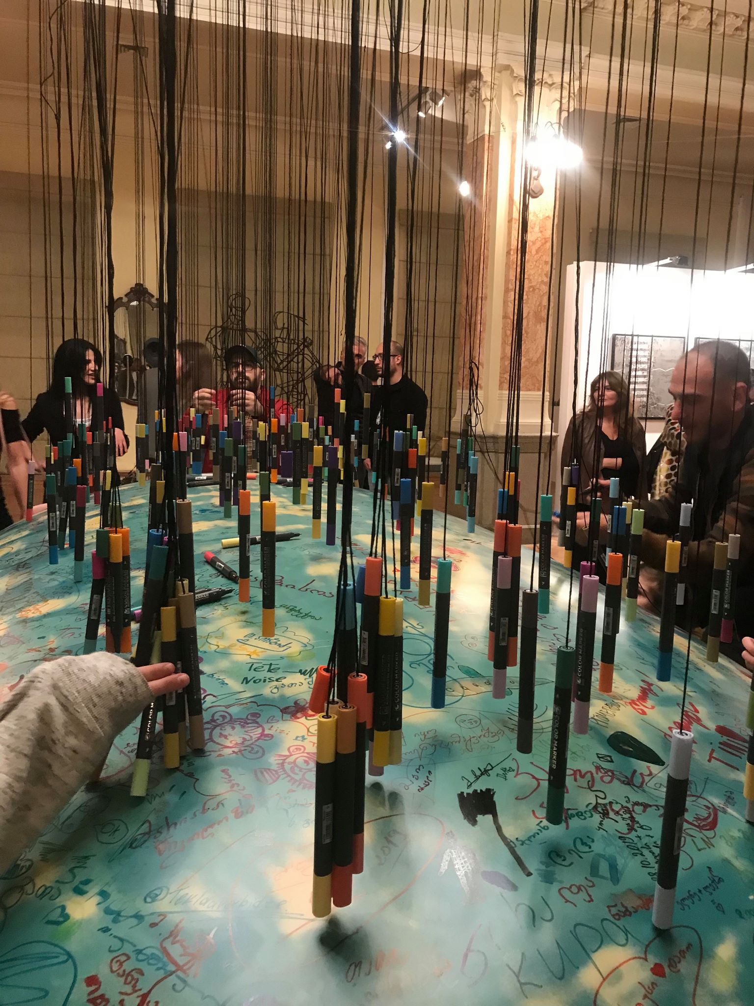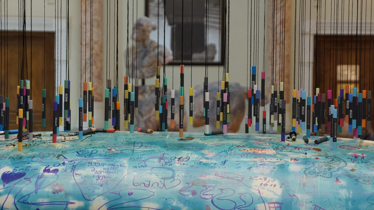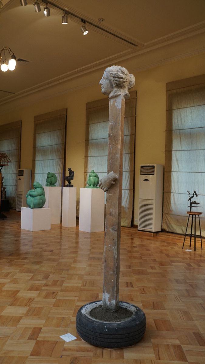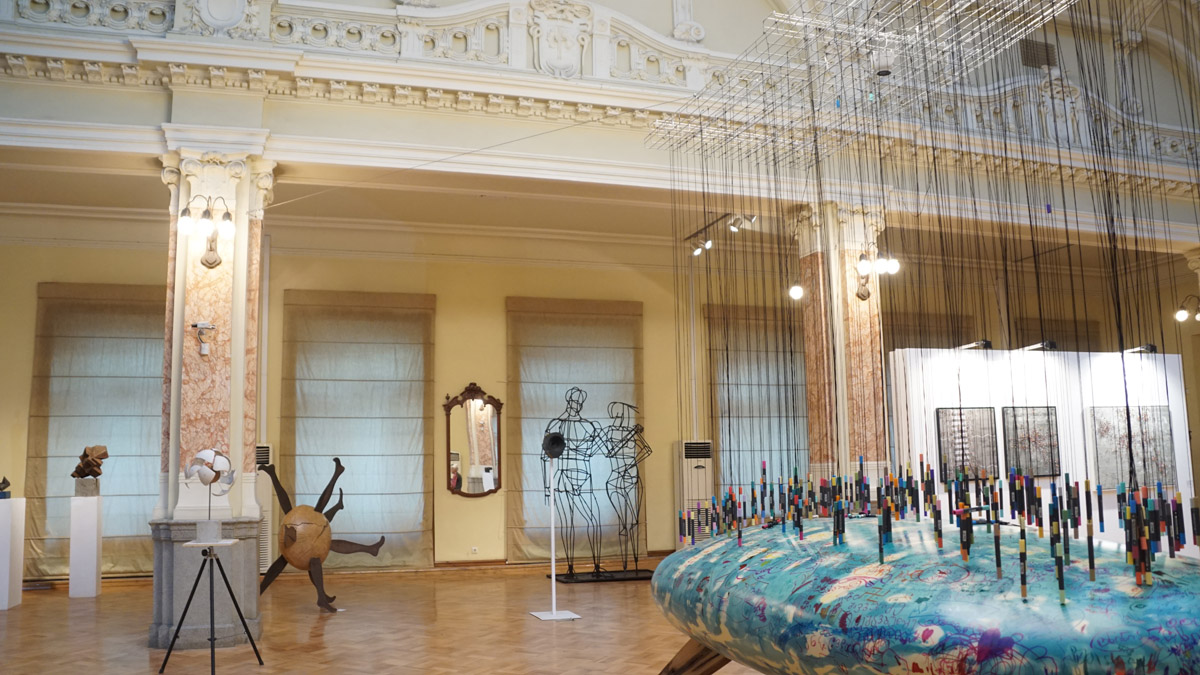 სივრცე, რომელშიც სხვადასხვა თაობის ქართველ ხელოვანთა სამგანზომილებიანი ნამუშევრები უნდა გვეჩვენებინა კურატორებისთვის (ხათუნა ხაბულიანი, ელიჩკა ნადარეიშვილი)  ნამდვილი გამოწვევა იყო – ძალიან რთული, სტილისტური დეტალებითა და ისტორიული ინფორმაციით დატვირთულ დარბაზს, რომელიც თავისი პარამეტრებით არ არის გამოფენებისათვის კომფორტული გარემო, თუმცა  კულტურული მნიშვნელოვნებით განსაკუთრებული ღირებულების მქონეა, თავისუფლად შეიძლებოდა ნამუშევრები „შთაენთქა“. საბედნიეროდ, ასე არ მოხდა და რამდენიმე აქცენტი-ნამუშევრის შესაბამისმა გადანაწილებამ ექსპოზიციაც „იხსნა“ და დამთვალიერებელს თანამონაწილეობის შესაძლებლობა მისცა.