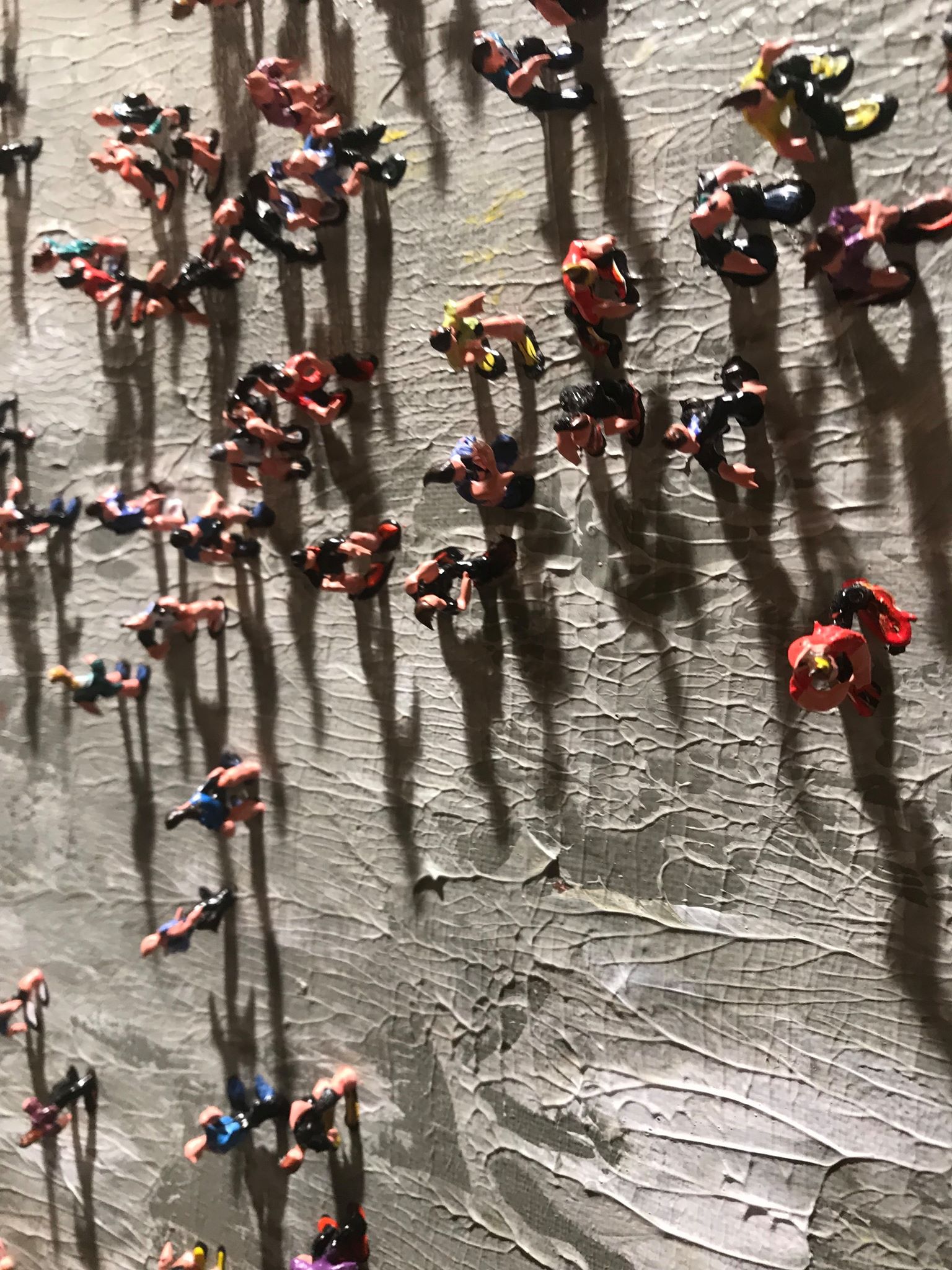 გამოფენაზე მონაწილე ფერმწერმა მერაბ სურვილაძემ ასევე თავისი სახასიათო ჩრდილებიანი სერიის სამი ნამუშევარი წარმოადგინა – ტილოს ზედაპირიდან ამოზრდილი ანონიმური კაცუნების ქაოსური ტალღები, რომლებიც ტილოზე ცვალებად სურათებს ქმნიან სინათლის დაცემის კუთხიდან გამომდინარე.