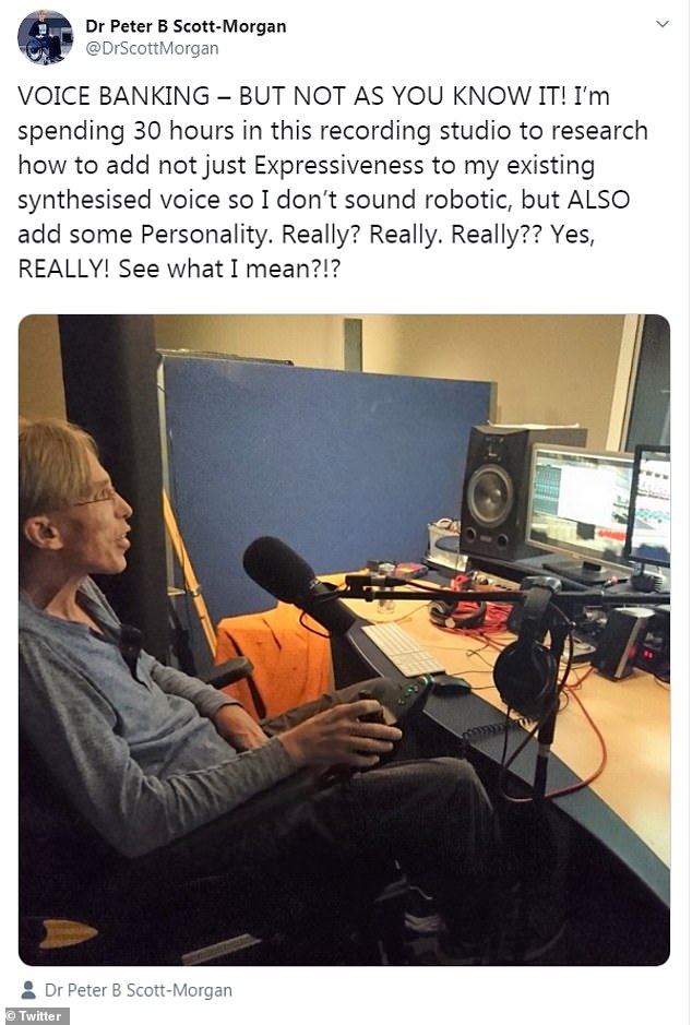 პიტერ სკოტ-მორგანი მოძრაობს სპეციალურად შექმნილი ელექტროეტლით, რომელიც მას საშუალებას აძლევს დაჯდეს, დადგეს ან დაწვეს. ცოტა ხნის წინ მეცნიერმა შექმნა საკუთარი სახის ავატარი, რადგან პროგრესირებადი დაავადების პირობებში შეუძლებელი იყო სახის კუნთების კონტროლი, ახლა კი პიტერს უკვე ძველებურად შეუძლია სხვადასხვა გამომეტყველების მიღება.