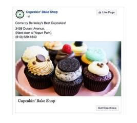 Cupcakin’ Bake Shop კალიფორნიაში მდებარე კექსის საცხობია, რომლის მიზანი ბიზნესის ზრდა იყო. ფეისბუქზე რეკლამის შექმნისას მათ სამიზნე აუდიტორია განსაზღვრეს შემდეგი პრინციპით: 18-55 წლამდე ადამიანები, რომლებიც ცხოვრობდნენ საცხობიდან მაქსიმუმ 5 მილის დაშორებით და მათი ძირითადი ინტერესები იყო: ქორწილი, ყვავილები, კექსები. 1 წლის განმავლობაში ფეისბუქზე განთავსებულმა რეკლამამ 4,5-ჯერ მეტად გაზარდა რეალიზაცია, ვიდრე ბეჭდურმა რეკლამამ.