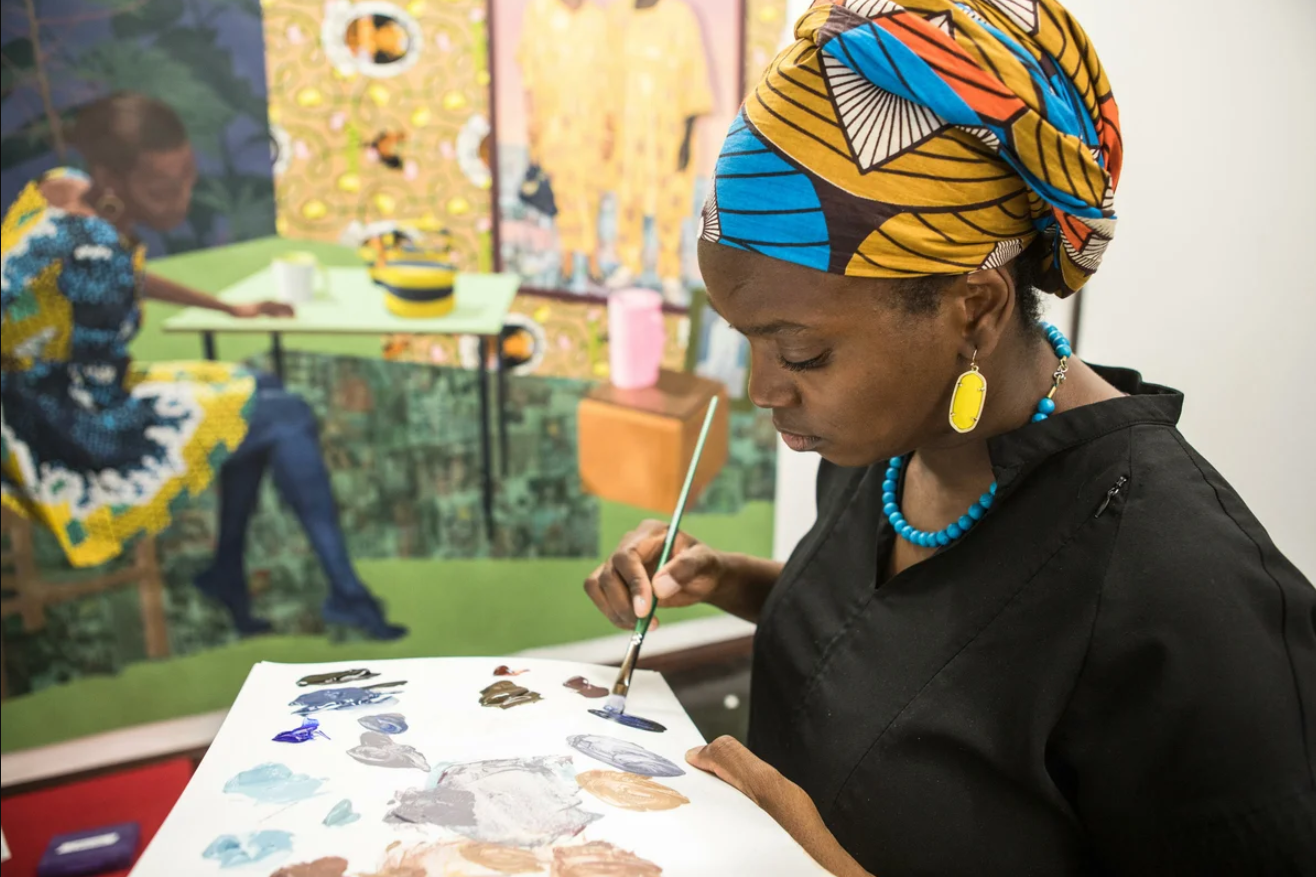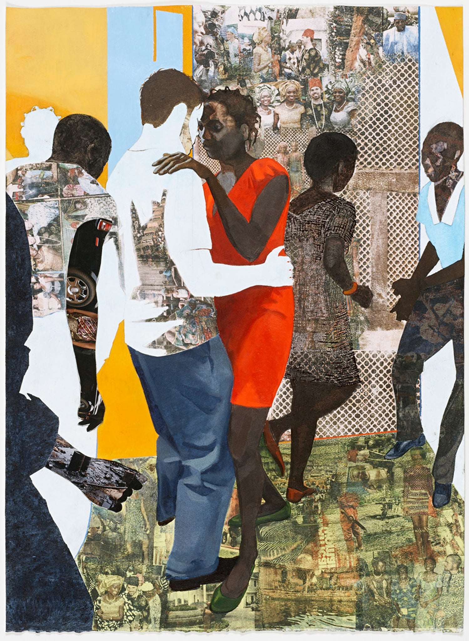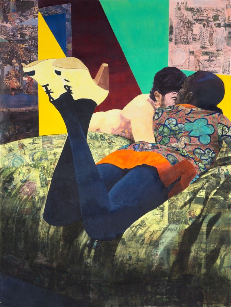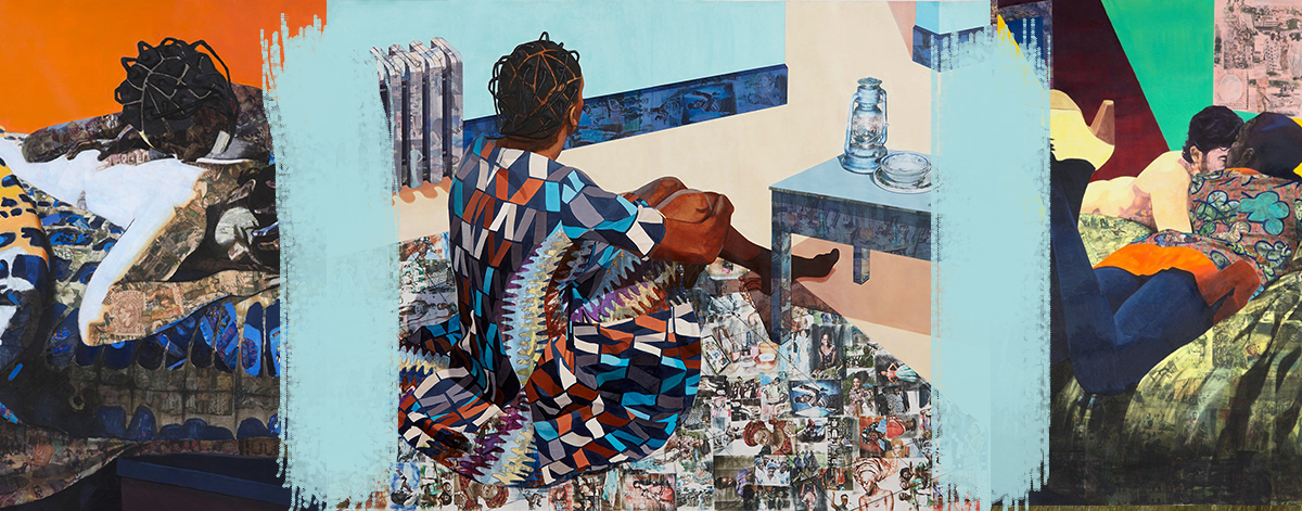 არტისტის თითოეული ნახატი კონკრეტულ ამბავს ჰყვება. როცა მის უზარმაზარ ტილოებს შორიდან უყურებ, ბანალურ სცენებს ხედავ, მაგალითად, ქალს, რომელიც ტელევიზორთან ისვენებს, ან წყვილის ინტიმურ სცენას საძინებელში. თუმცა, თუ ახლოდან დააკვირდები, სულ სხვა ამბებს ამოიკითხავ – კოლაჟის ხერხით მოთხრობილ ისტორიებს კოლონიალიზმსა და კოსმოპოლიტიზმზე, ემიგრაციაზე, აფრიკულ-ამერიკულ კულტურათა დიალოგზე, ნიგერიის ისტორიაზე, იდენტობაზე, ნიგერიელის ყოფაზე უცხო გარემოში.