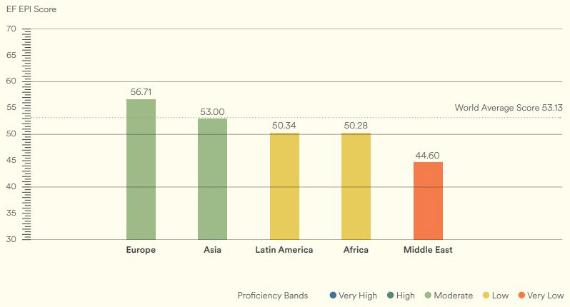 მსოფლიოში მილიარდობით ადამიანი ლაპარაკობს ინგლისურად, ენის ცოდნა კი მათ შორის ბარიერებს ამცირებს და აჩქარებს ინფორმაციის გაცვლას. წინამდებარე კვლევა საერთაშორისო საგანმანათლებლო კომპანია EF-მ ჩაატარა, რომელიც აფასებს სხვადასხვა რეგიონების 100 ქვეყანაში ინგლისურის ცოდნის დონეს და მის კორელაციას ქვეყნების განვითარებაზე.
