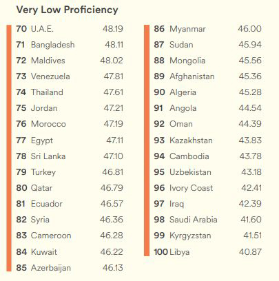 ინგლისურის ცოდნის რეიტინგში საქართველო 56-ე ადგილზეა – ალბანეთის, ბოლივიის, ვიეტნამისა და პაკისტანის შემდეგ