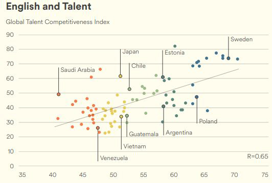 ინგლისურის ცოდნასა და გლობალური ნიჭიერების კონკურენტუნარიანობის ინდექსს შორის მაღალი კორელაციაა (იხ. გრაფიკი A). ეს ანგარიში აფასებს ქვეყნის შესაძლებლობას, მოიზიდოს, განავითაროს და შეინარჩუნოს გამოცდილი პერსონალი.