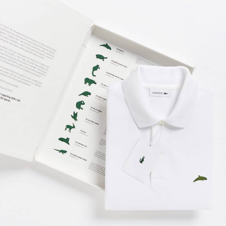 ფრანგული ბრენდი Lacoste  ბუნების დაცვის საერთაშორისო კავშირის (IUCN) კამპანიას – “გადაარჩინე სახეობები” (SOS) შეუერთდა.   ბუნების დაცვის საქველმოქმედო ღონისძიება შეზღუდული მაისურების გამოშვებას გულისხმობდა, რომელზედაც მწვანე ნიანგის ნაცვლად, გადაშენების პირას მყოფი სახეობები იყო  გამოსახული.