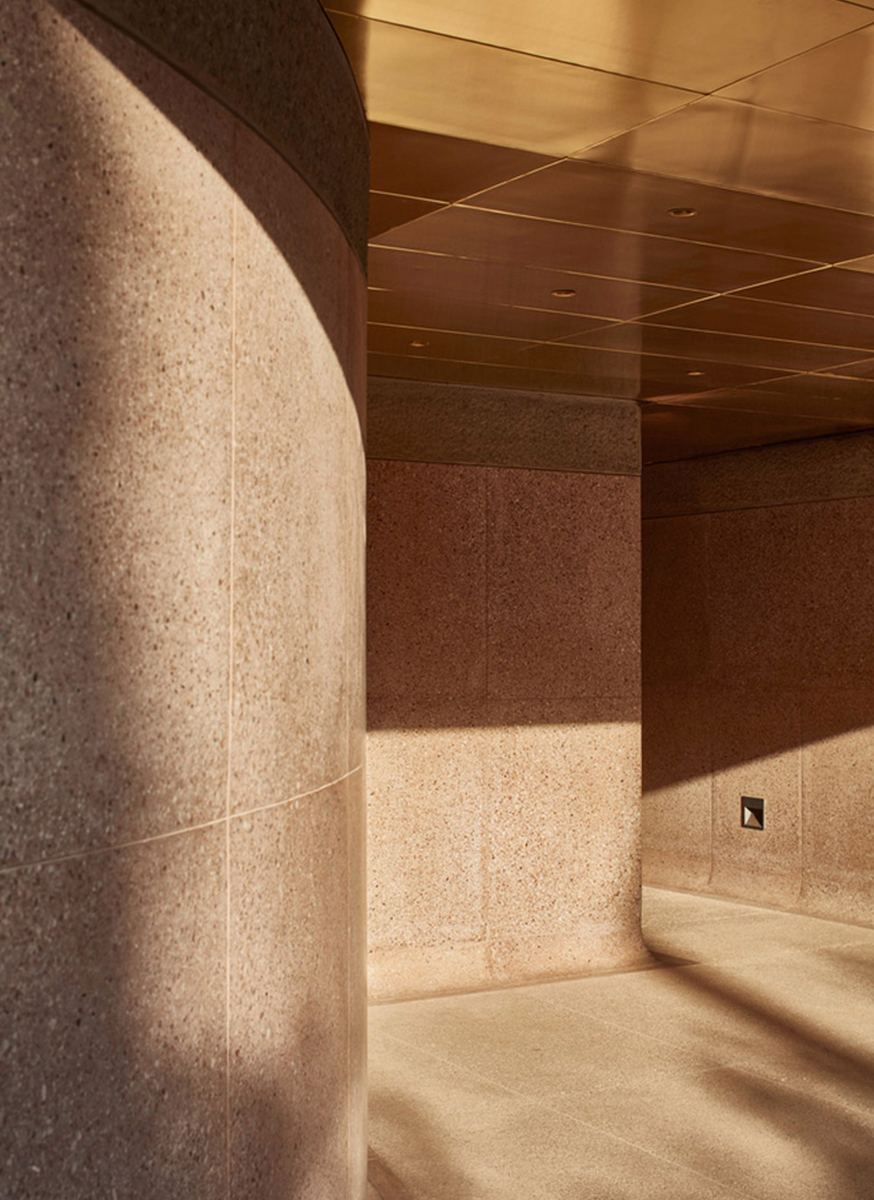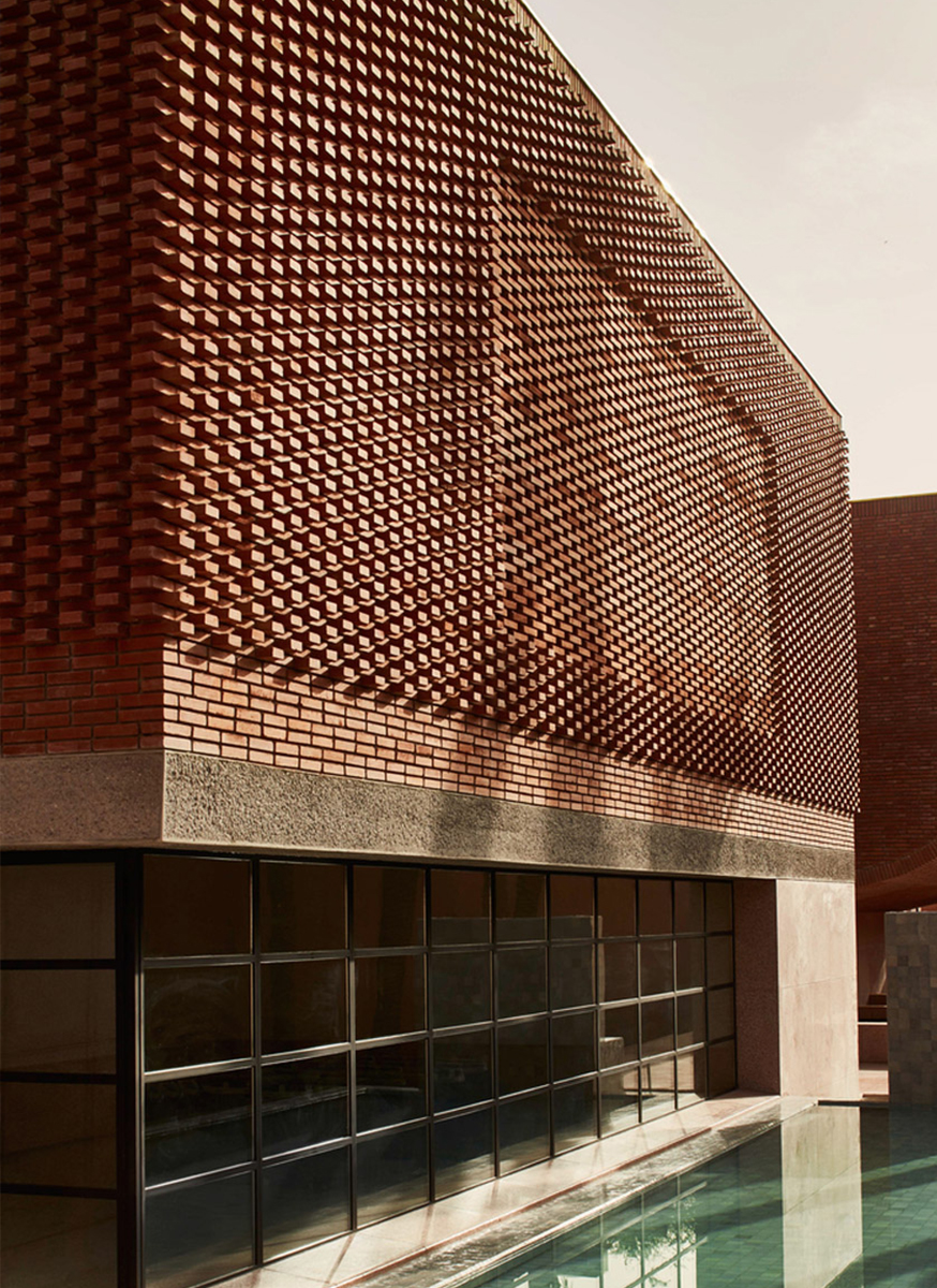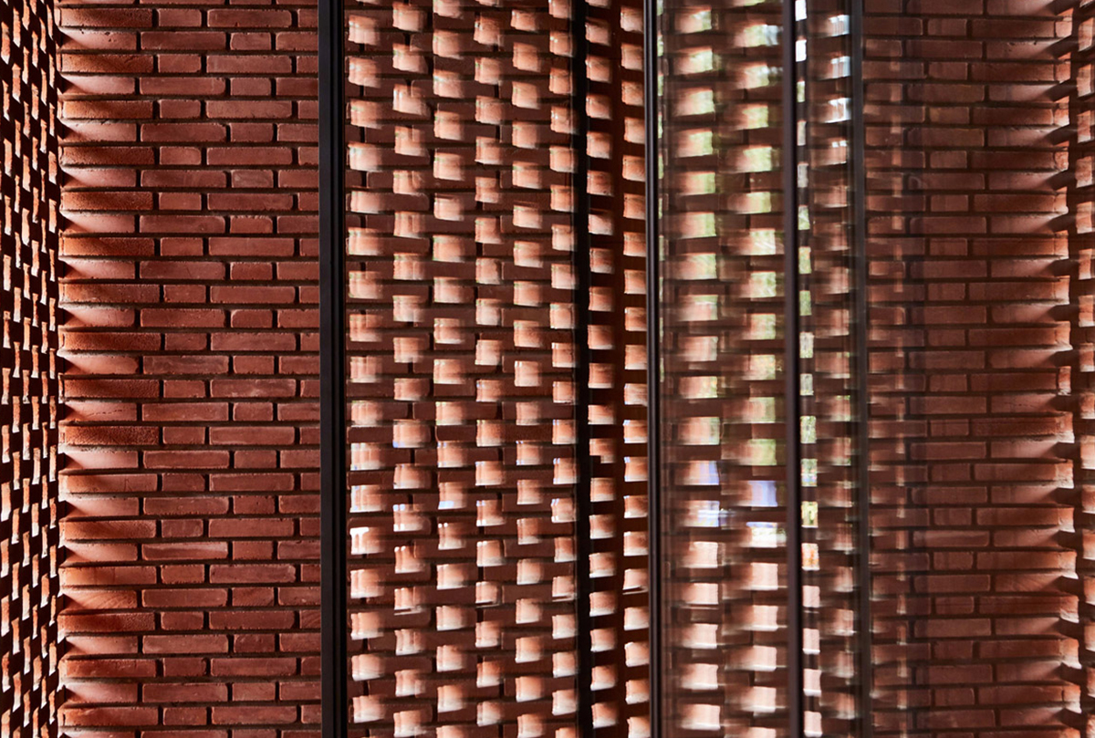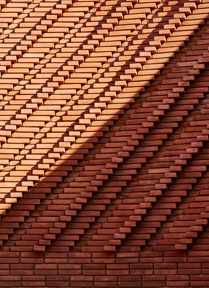 შენობის ექსტერიერი შედგება აგურისგან შექმნილი კუბური ფორმებით, რომლებიც ქმნიან ქსოვილისებური ტექსტურის ნიმუშს. ინტერიერი შედარებით განსხვავებულია: მანათობელი, ხავერდოვანი და გლუვი.