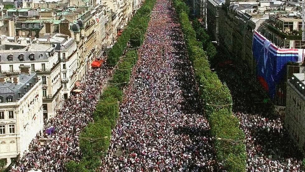 აპრილში პარიზში, ელისეს მინდვრებზე, სეირნობისას გამახსენდა, რამდენი ხალხი იყო გამოსული 1998 წლის მსოფლიო ჩემპიონატის შემდეგ ფრანგული დროშებით, ბედნიერი ფრანგები „მარსელიეზას“ მღეროდნენ. ამ ქუჩაზე ყოველთვის ხალხმრავლობაა, თუმცა ის მაინც სხვა იყო.
