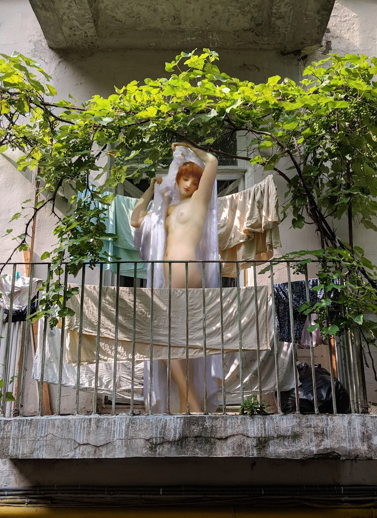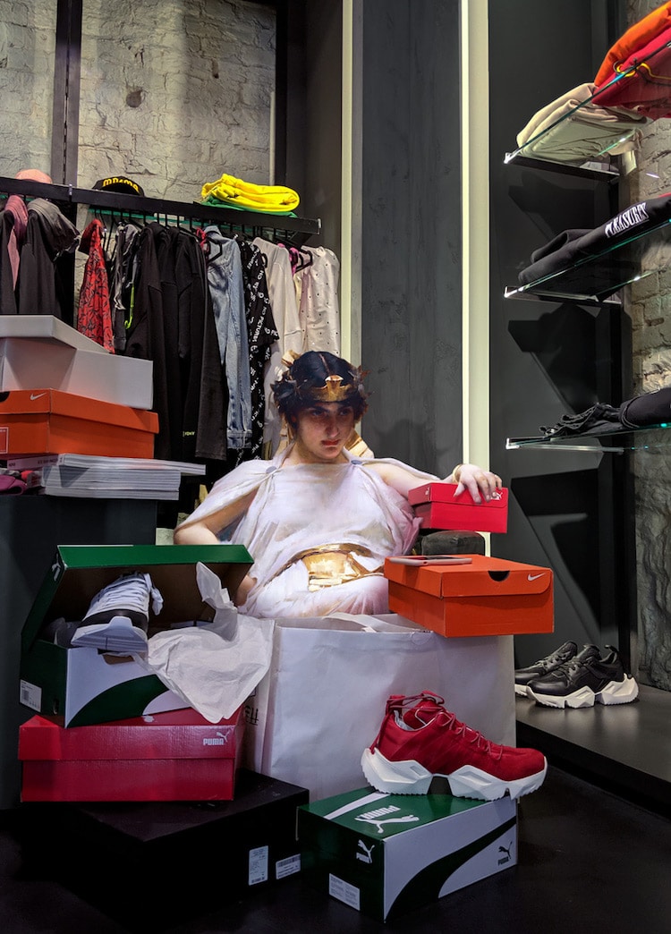 მუზები შემოსილები არიან, მაგრამ ზოგიერთ შემთხვევაში გვხვდებიან შიშვლებიც. რენესანსული პერსონაჟების ტანსაცმლის მაღაზიებსა და საზოგადოებრივ ტრანსპორტში გამოჩენით, ხელოვანი ძველ ფერწერას თანამედროვე ცხოვრებაში ახალ სუნთქვას ანიჭებს.