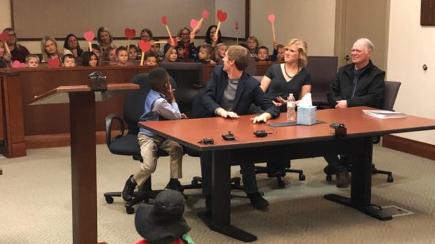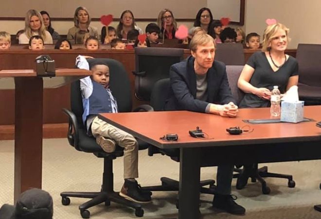5 წლის ბიჭმა მთელი ჯგუფი მისი შვილად აყვანის პროცესზე დასასწრებად სასამართლოში დაპატიჟა