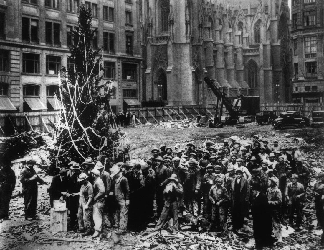 ისტორია გასული საუკუნის 30-იანი წლებიდან იღებს სათავეს, „დიდი დეპრესიის“ პერიოდიდან, როცა ნიუ-იორკის ერთ-ერთი მთავარი ღირსშესანიშნაობის – როკფელერის ცენტრის მშენებლობა იწყებოდა. ისტორიამ შემოინახა მშენებლობის საძირკვლის ჩაყრის ამსახველი ფოტო. ტალახიან მიწის ნაკვეთზე თავმოყრილ მუშებს ექვსმეტრიანი ბალზამური სოჭი შტოშით, ქაღალდის გირლანდებით და კონსერვის ქილებით აქვთ მორთული.