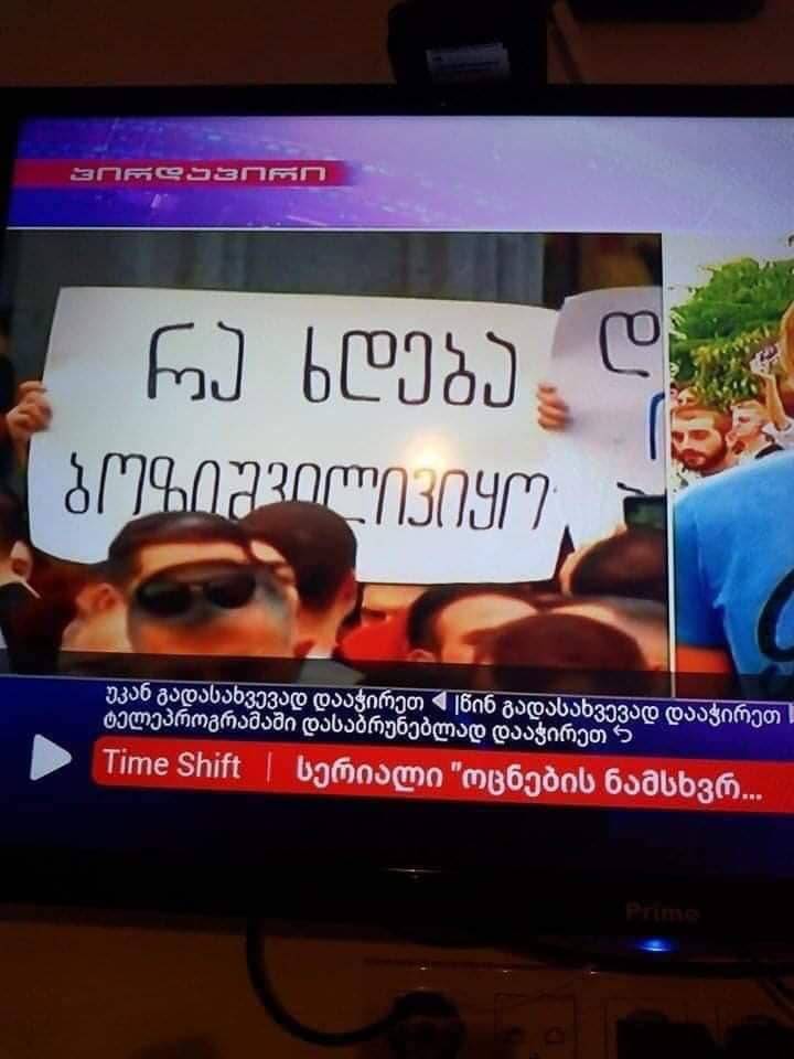 - “რა ხდება ბოზიშვილივიყო” – პლაკატი 20 ივნისის საპროტესტო აქციაზე