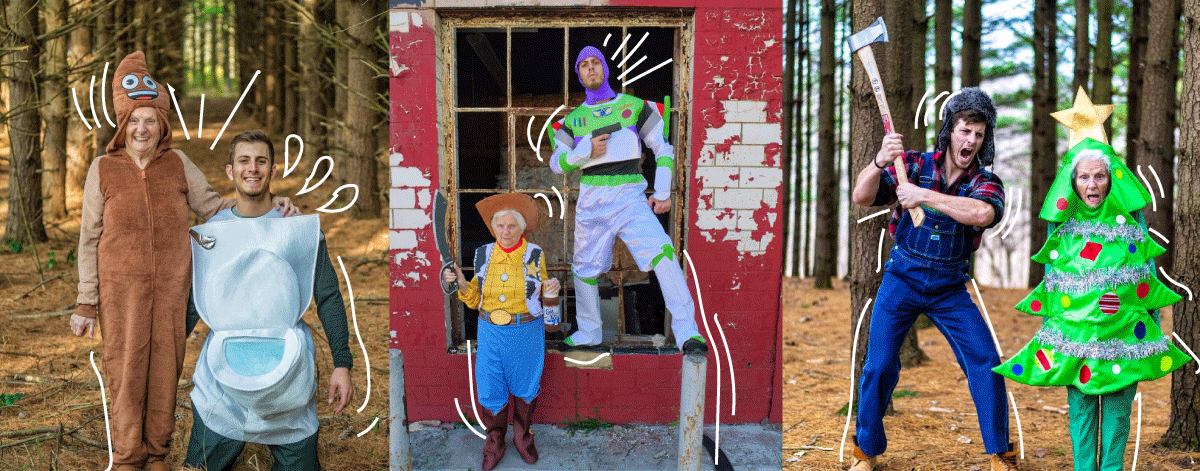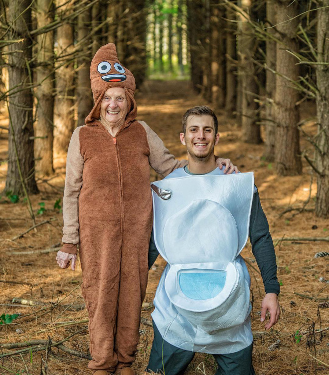 93 წლის ბებია და მისი შვილიშვილი სასაცილო კოსტიუმებში გამოეწყვნენ და ბრწყინვალედ გამოიყურებიან