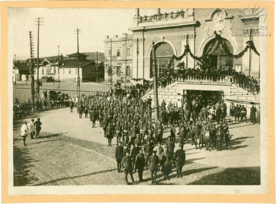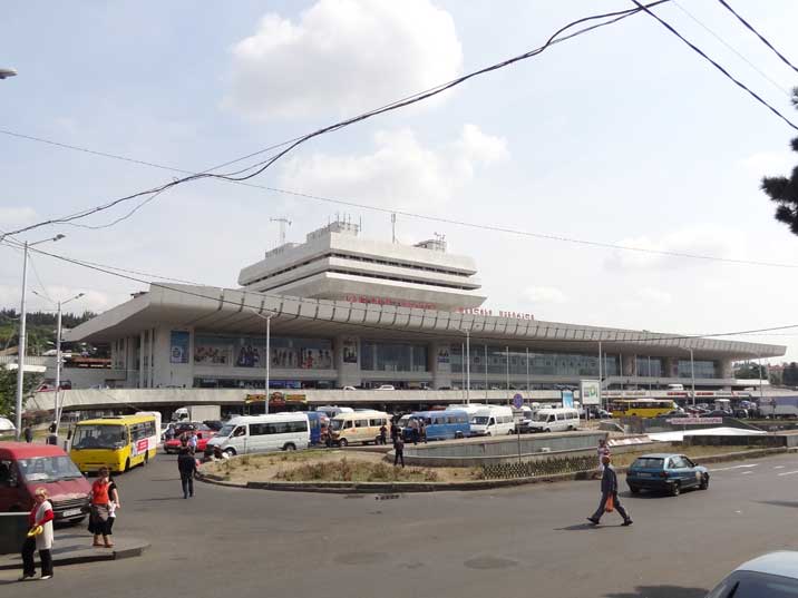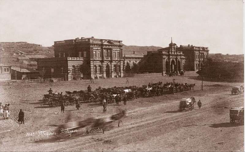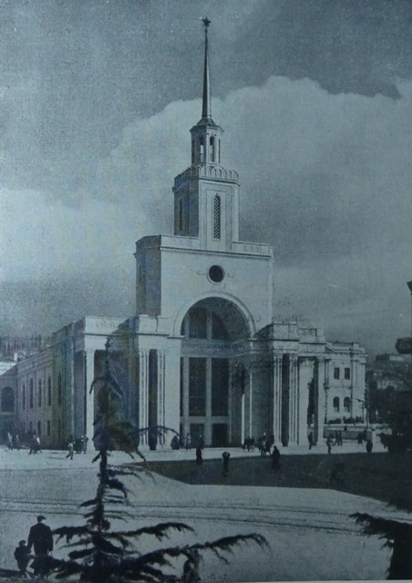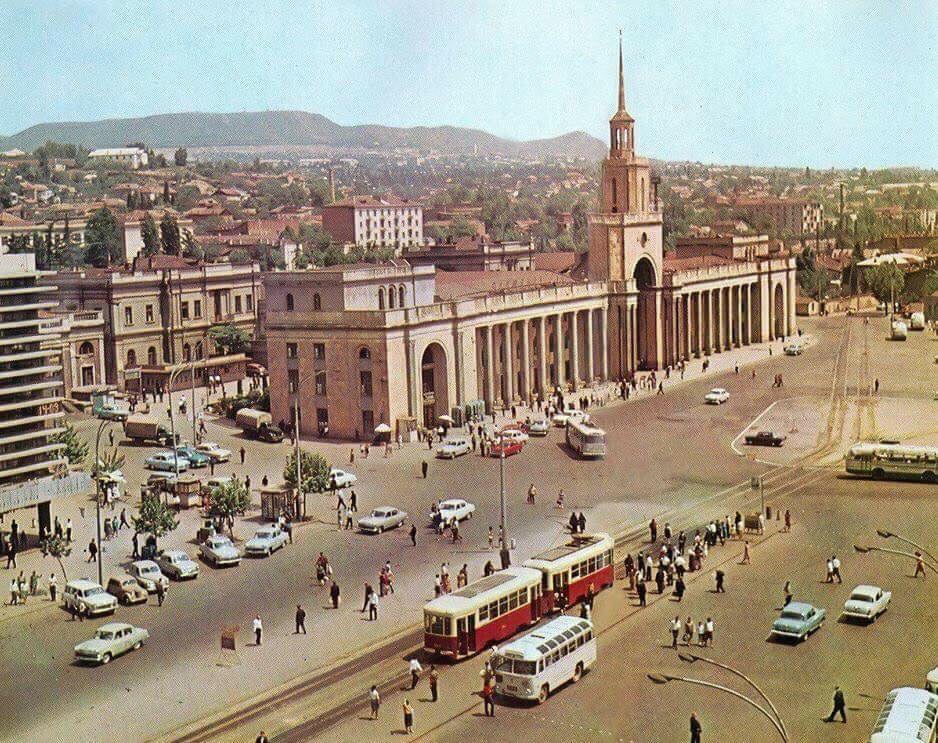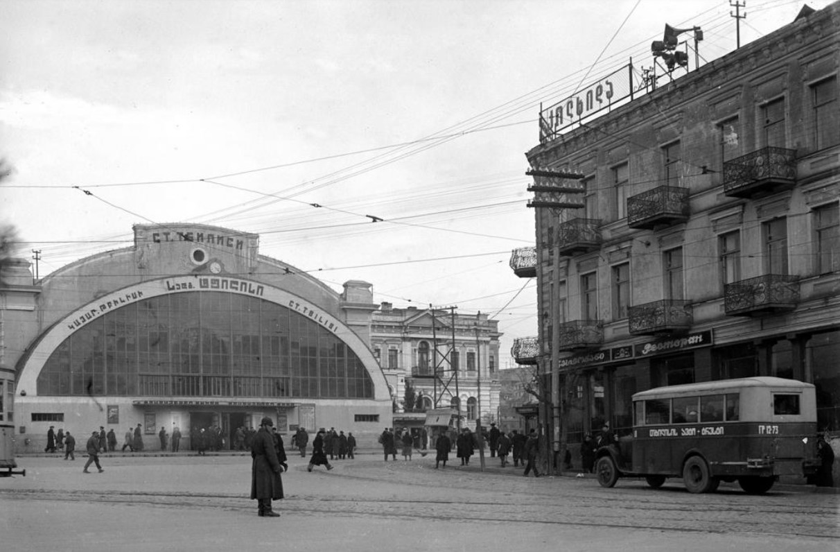 ფოტო გადაღებულია ამიერკავკასიის საბჭოთა ფედერაციის პერიოდში – ვაგზლის ახალ მიშენებას ამშვენებს ქართული, სომხური და აზერბაიჯანული წარწერები.