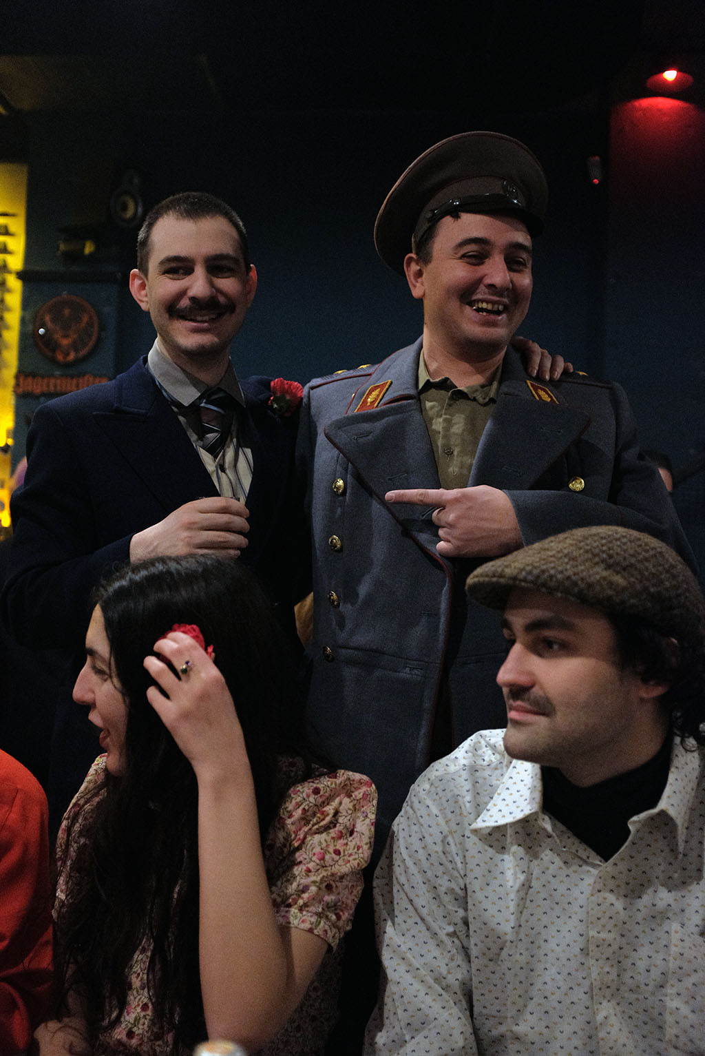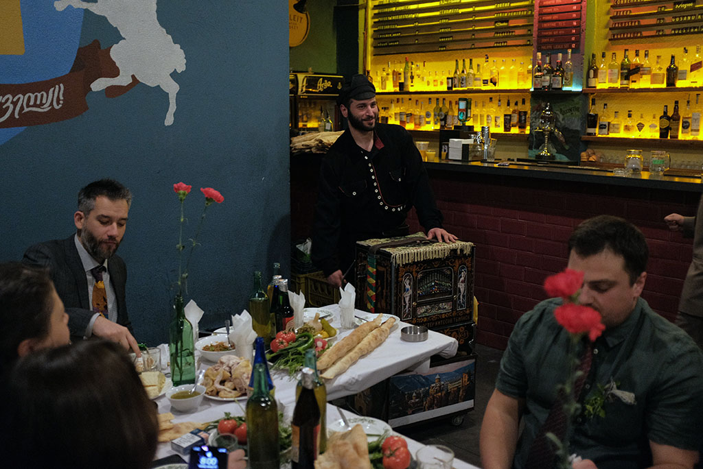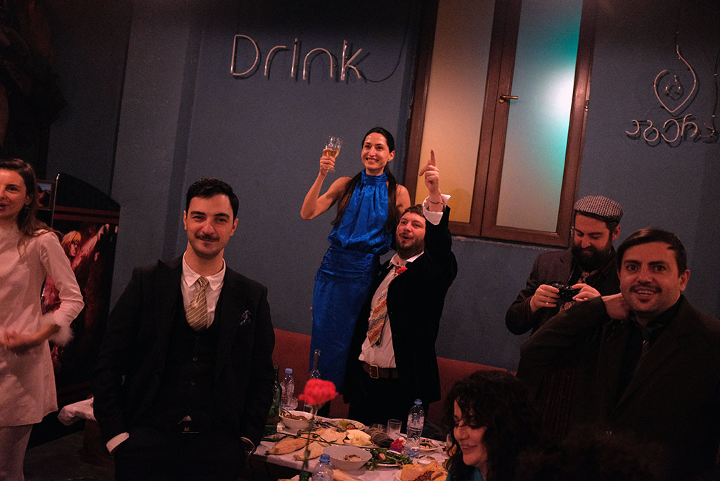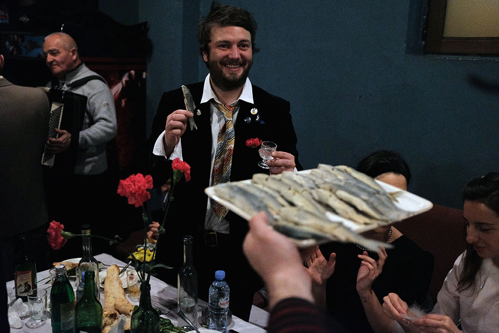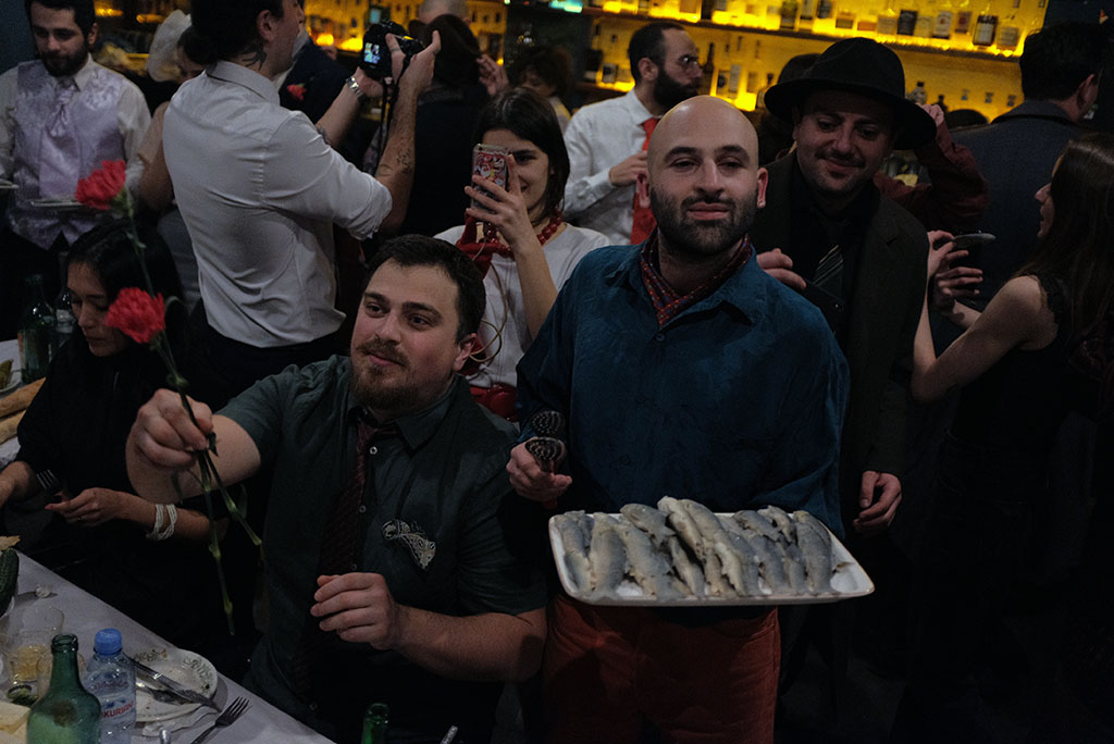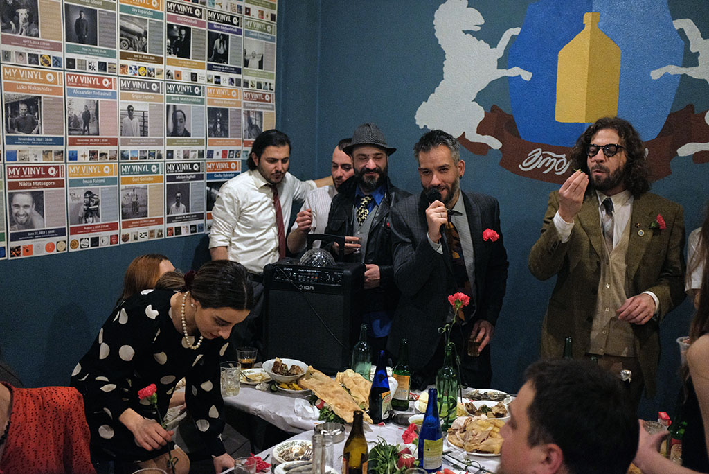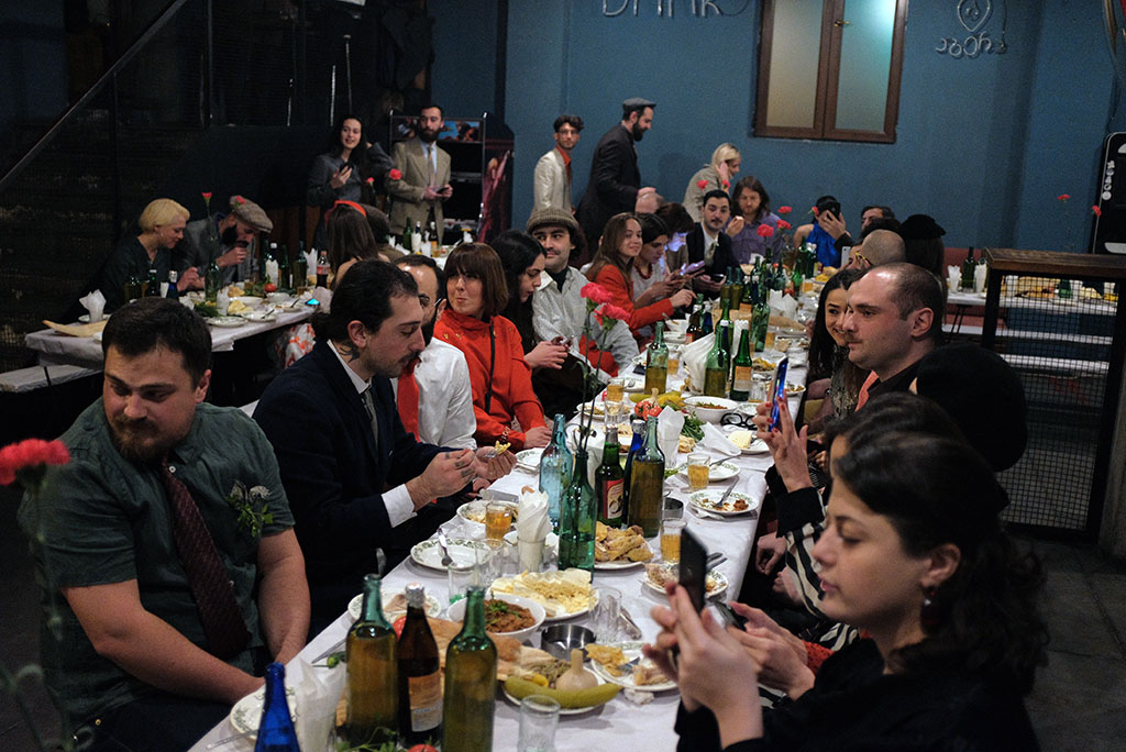 სუფრაზე ბევრი შავი ხიზილალა, ქარხნის ცუდი ღვინო, მოხარშული დედალი, ქაღალდგადაკრული უზარმაზარი მაგიდები და მუზიკანტების დასტაც შემორჩა მეხსიერებას.