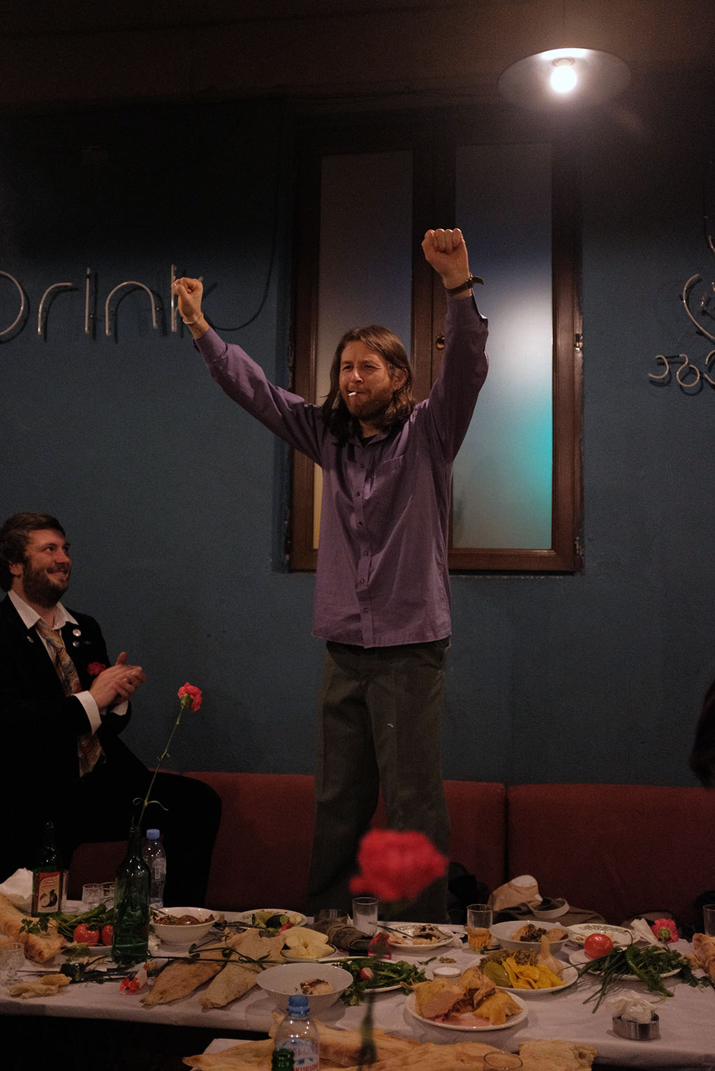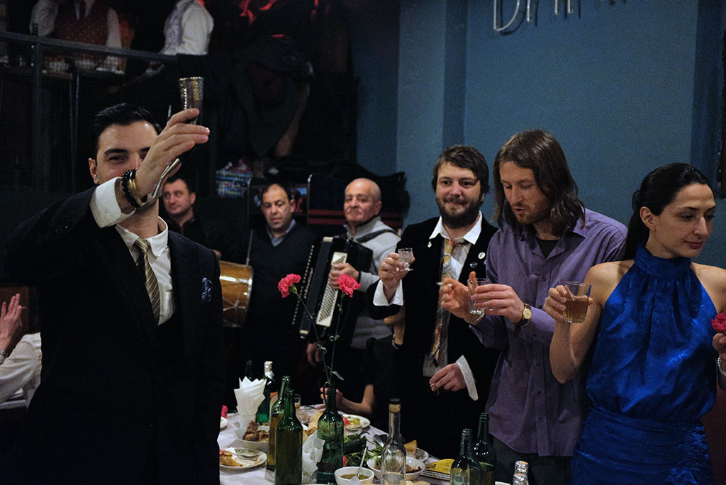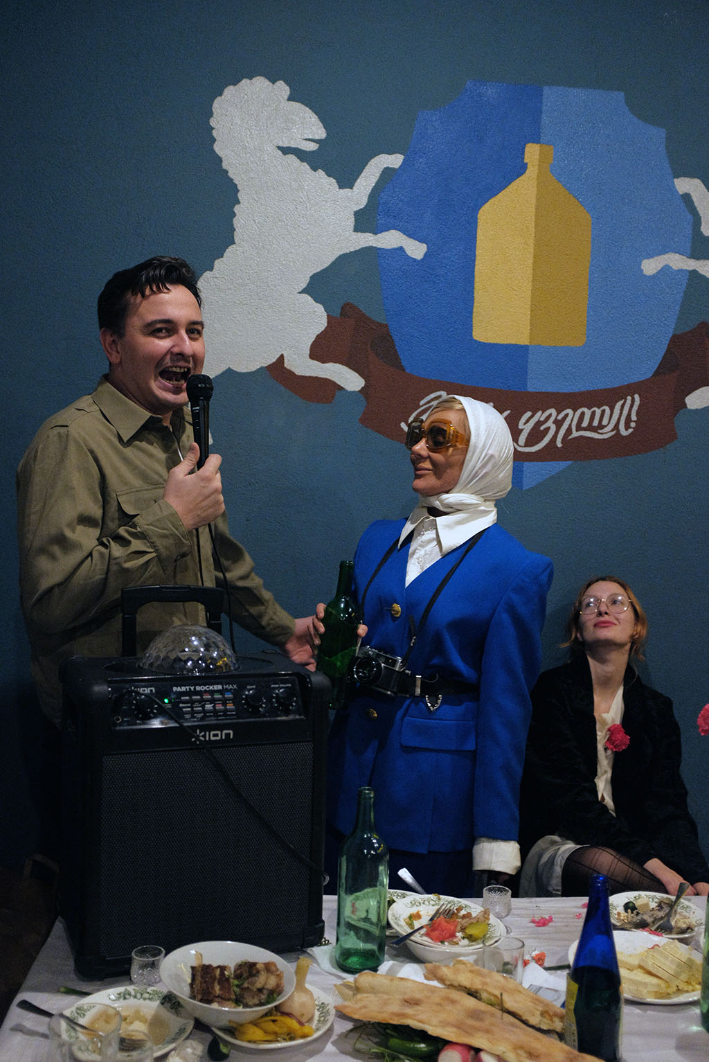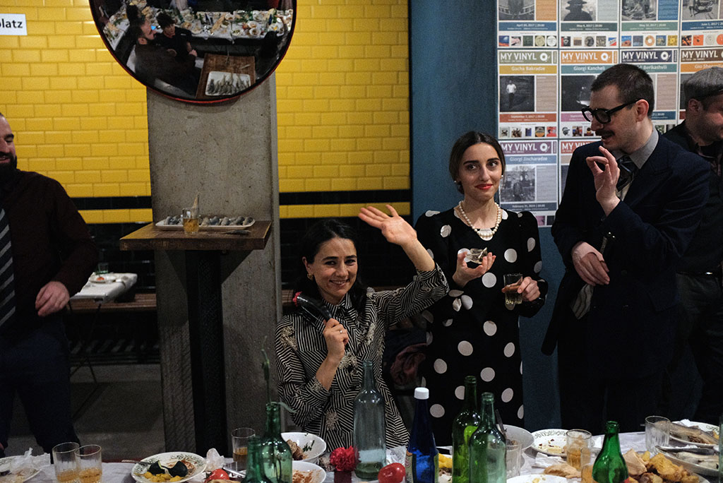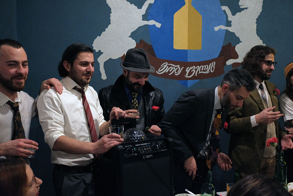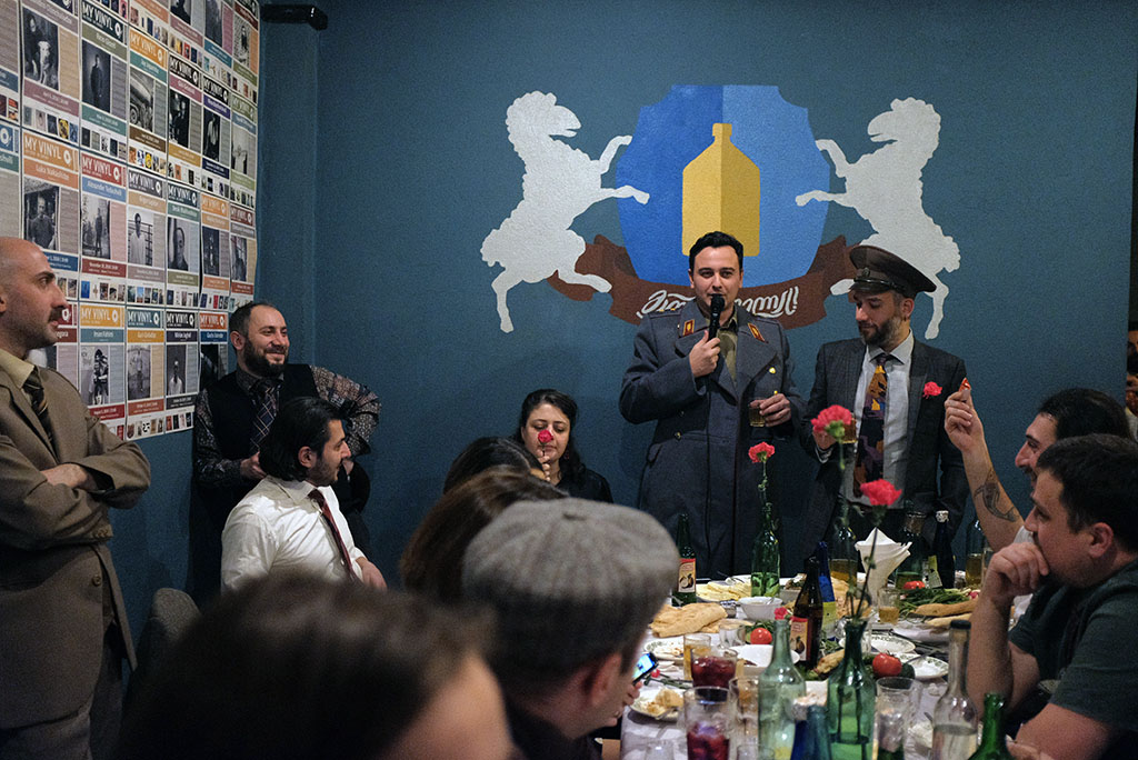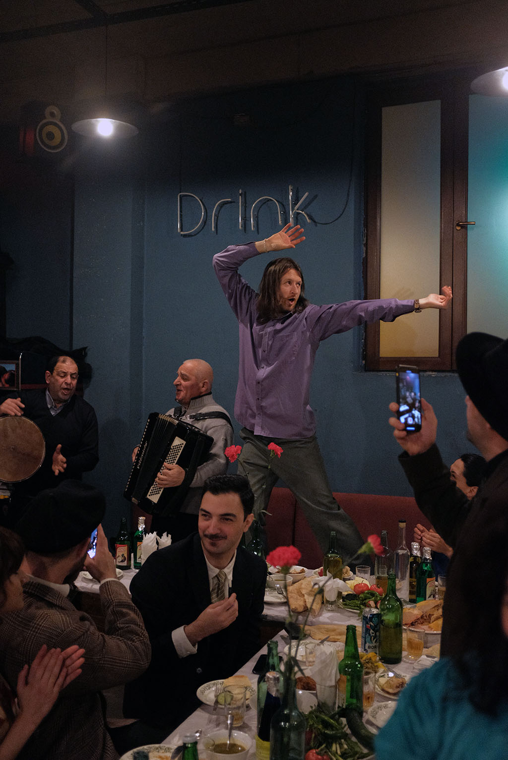 სუფრაზე ბევრი შავი ხიზილალა, ქარხნის ცუდი ღვინო, მოხარშული დედალი, ქაღალდგადაკრული უზარმაზარი მაგიდები და მუზიკანტების დასტაც შემორჩა მეხსიერებას.
