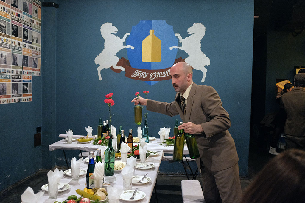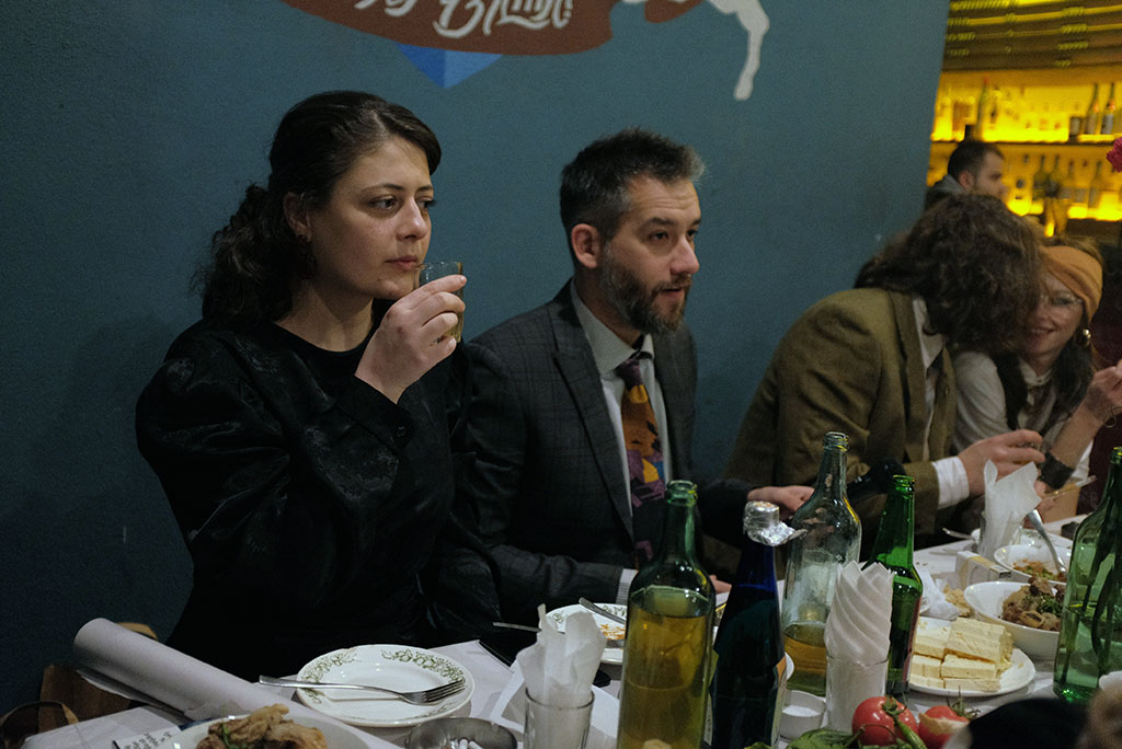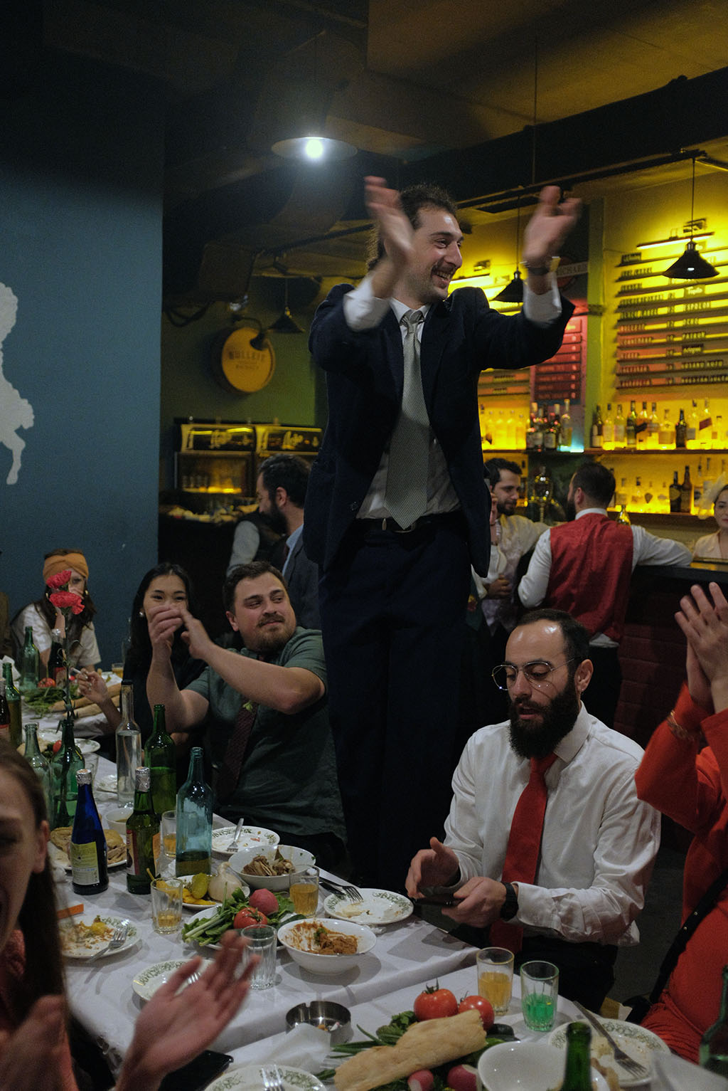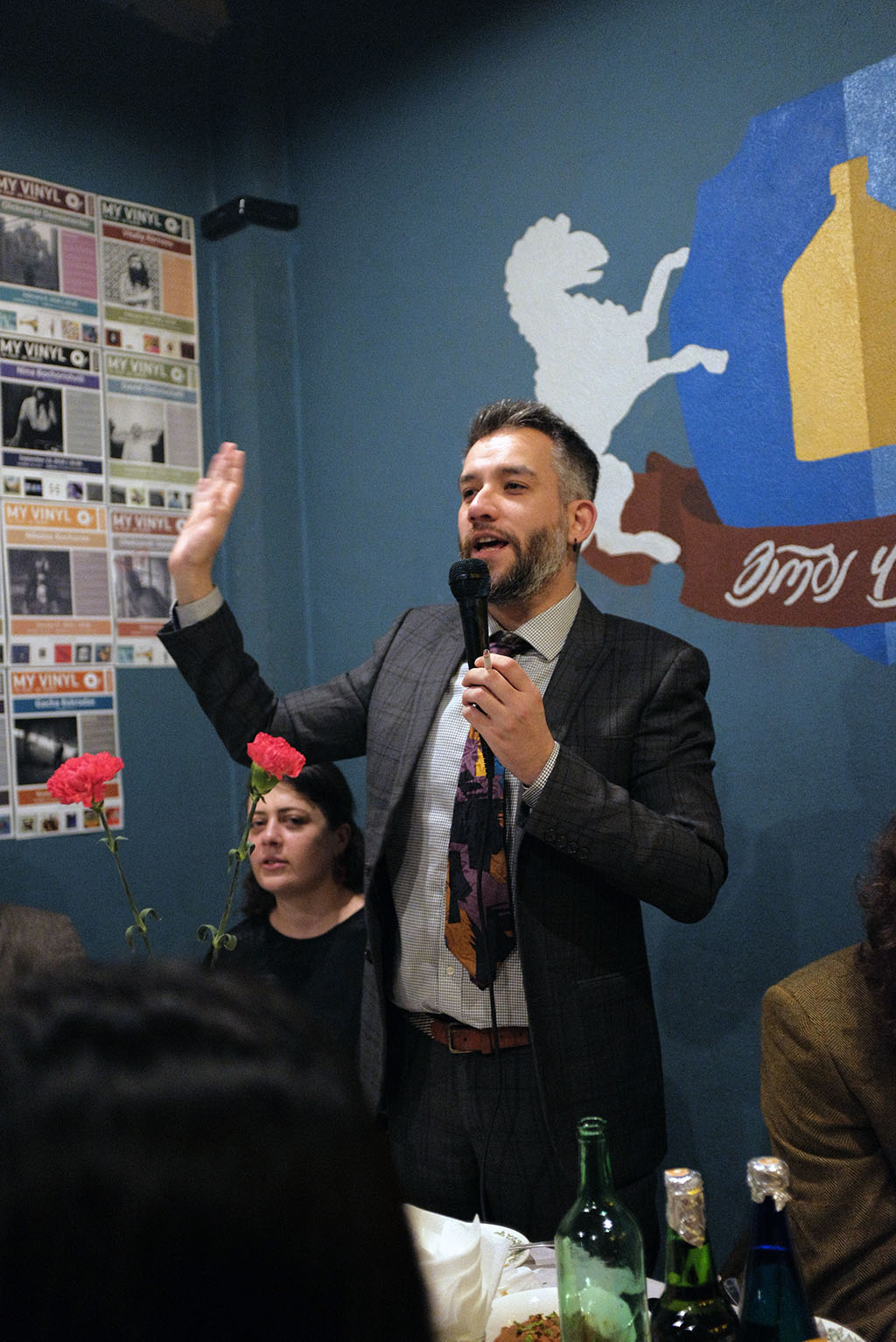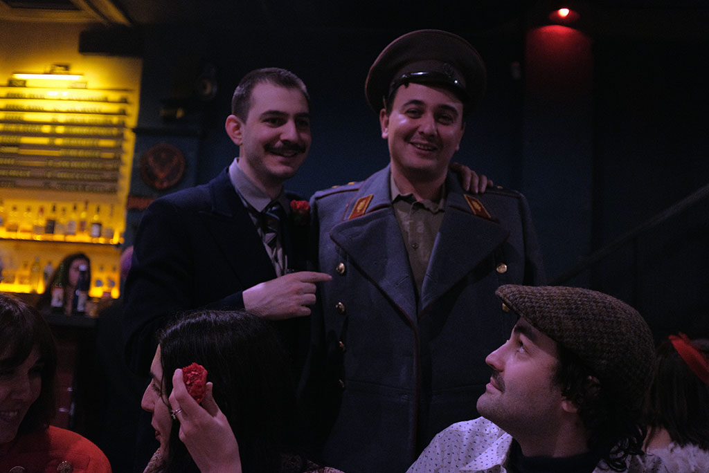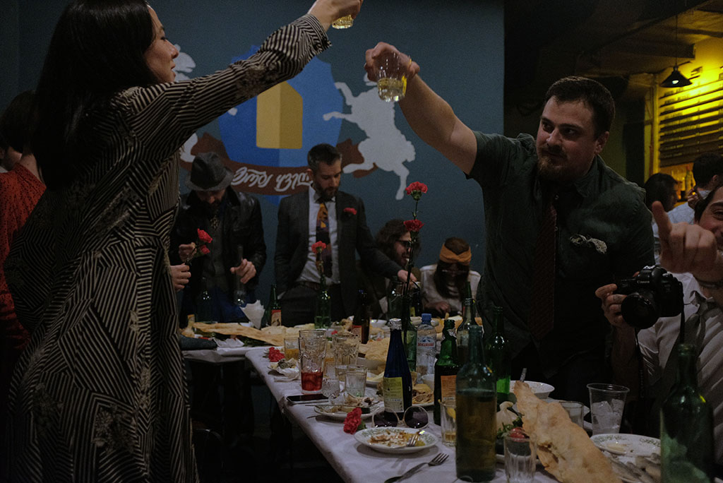 სუფრაზე ბევრი შავი ხიზილალა, ქარხნის ცუდი ღვინო, მოხარშული დედალი, ქაღალდგადაკრული უზარმაზარი მაგიდები და მუზიკანტების დასტაც შემორჩა მეხსიერებას.